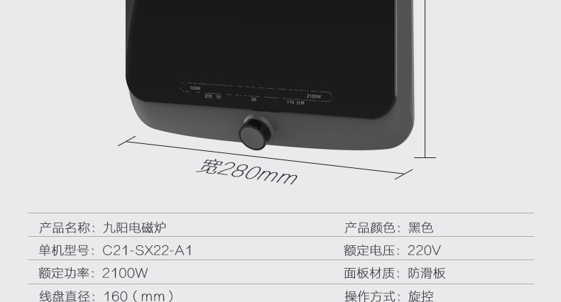 【授权商品】九阳(Joyoung) 电磁炉大功率炫酷旋控电磁灶(配带汤锅+炒锅)C21-SX22