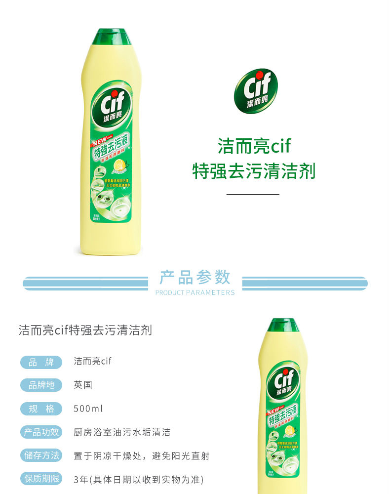 【清仓特价】港版洁而亮cif特强去污清洁剂瓷砖浴室厨房油污水垢清洁乳500ML
