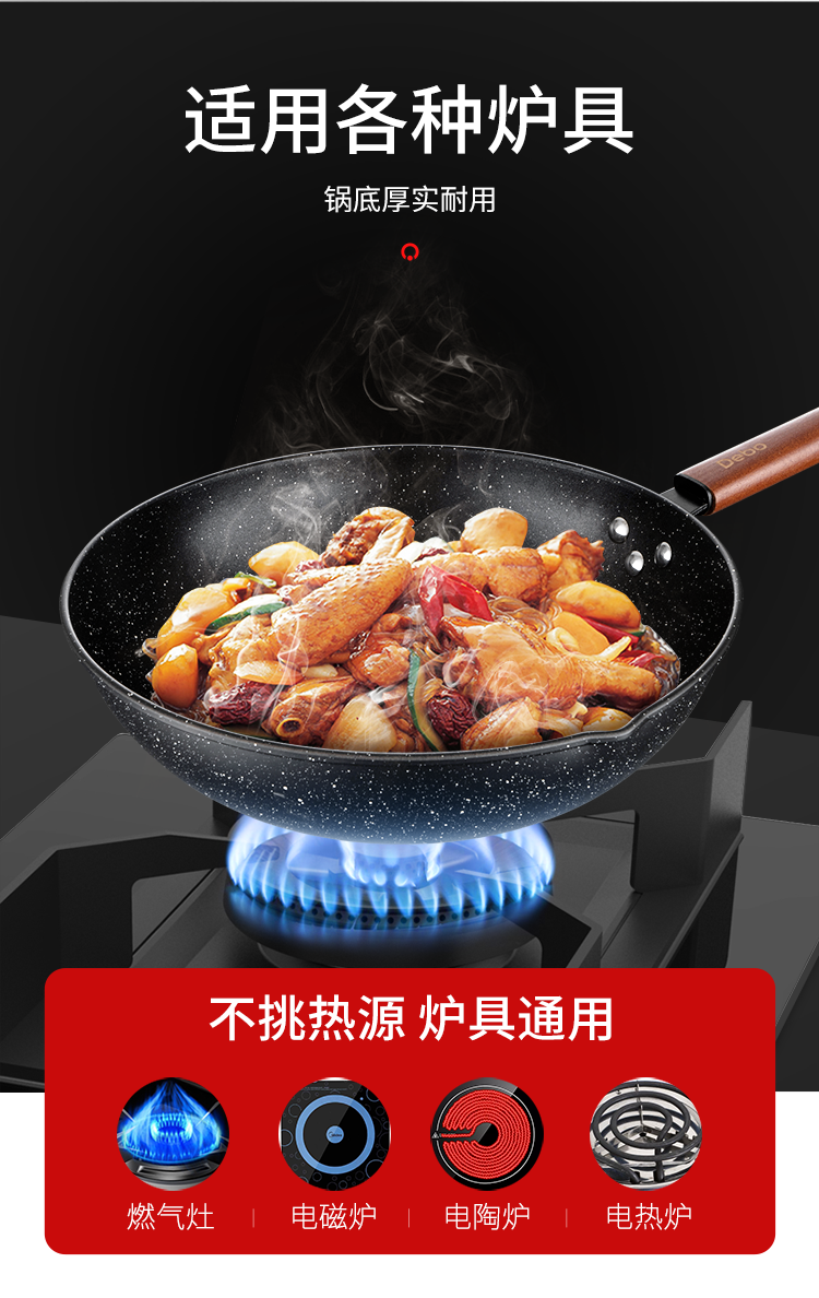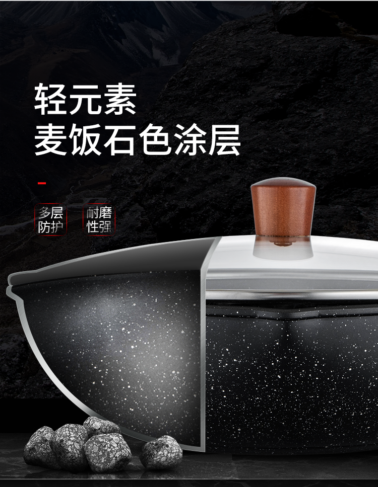 德国Debo德铂希伯来麦饭石色不粘锅少油烟带盖复合锅底明火电磁炉通用32cm
