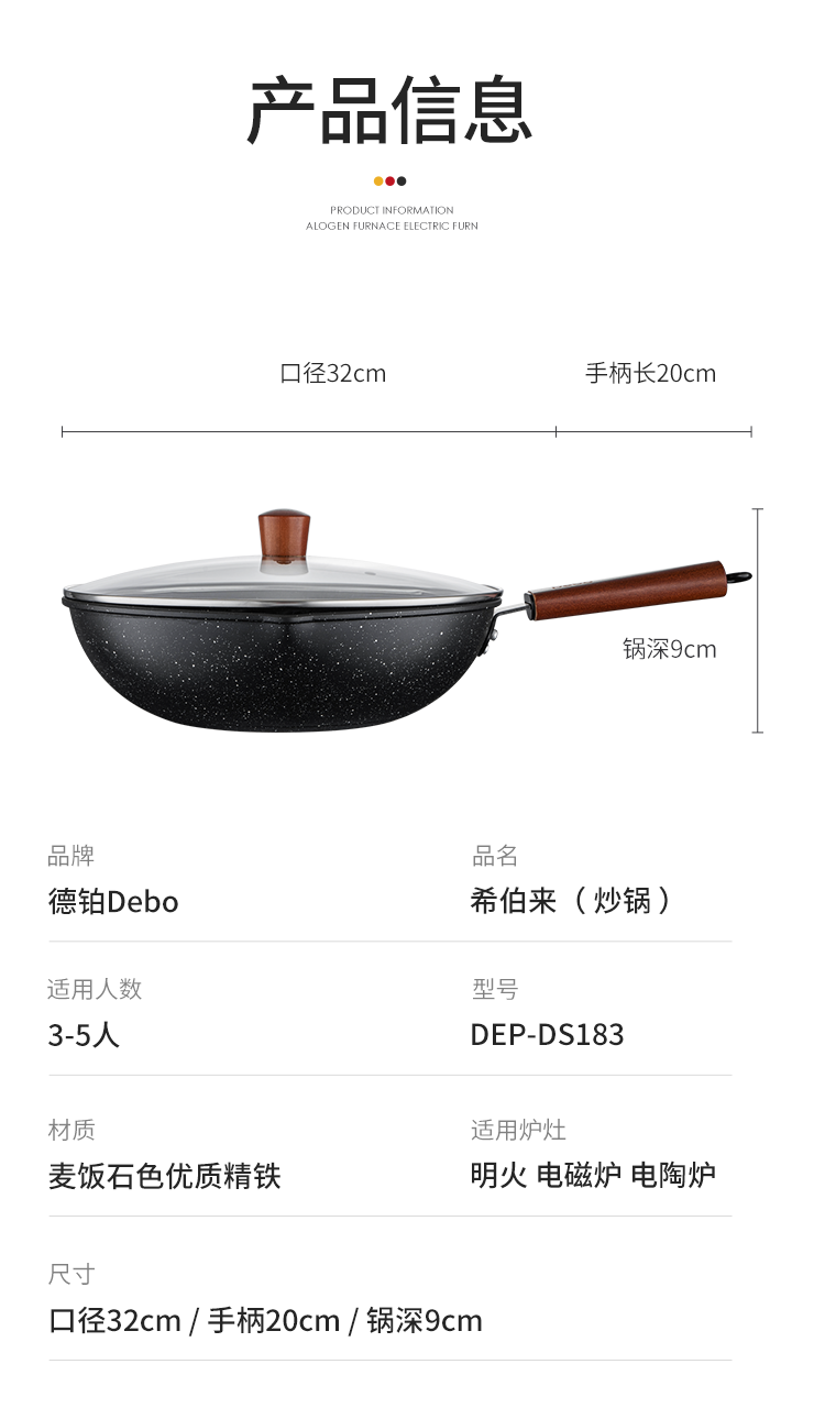 您所在的位置:首页 > 家居日用  > 烹饪锅具 > 炒锅  > 德国Debo德铂希伯来麦饭石色不粘锅少油烟带盖复合锅底明火电磁炉通用32cm