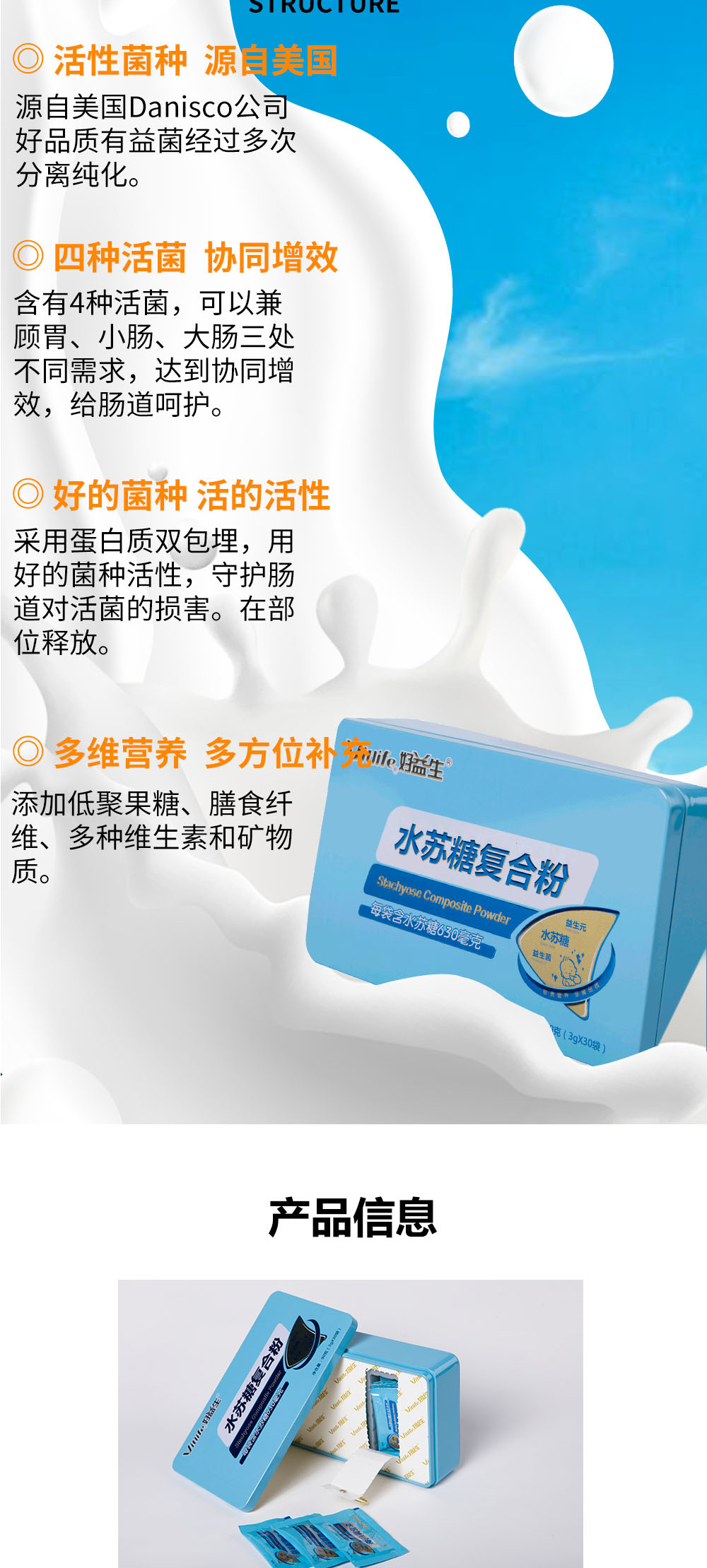 中国好益生水苏糖复合粉3g*30袋/铁盒
