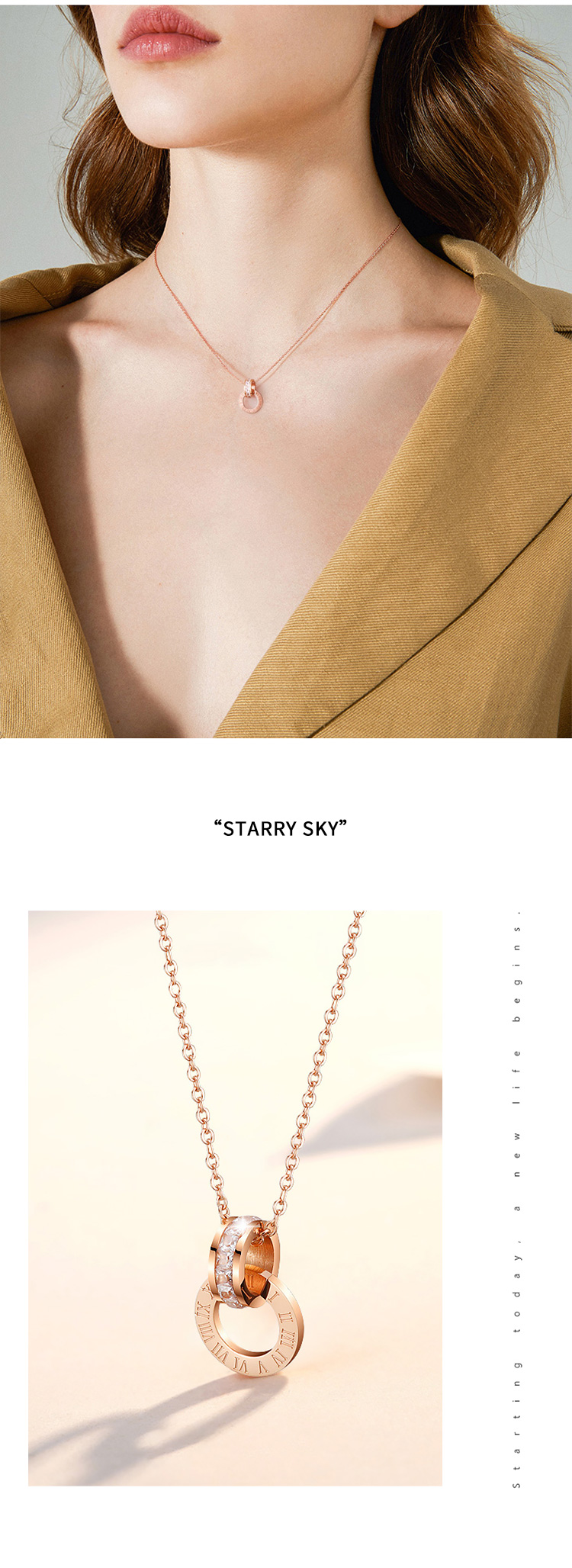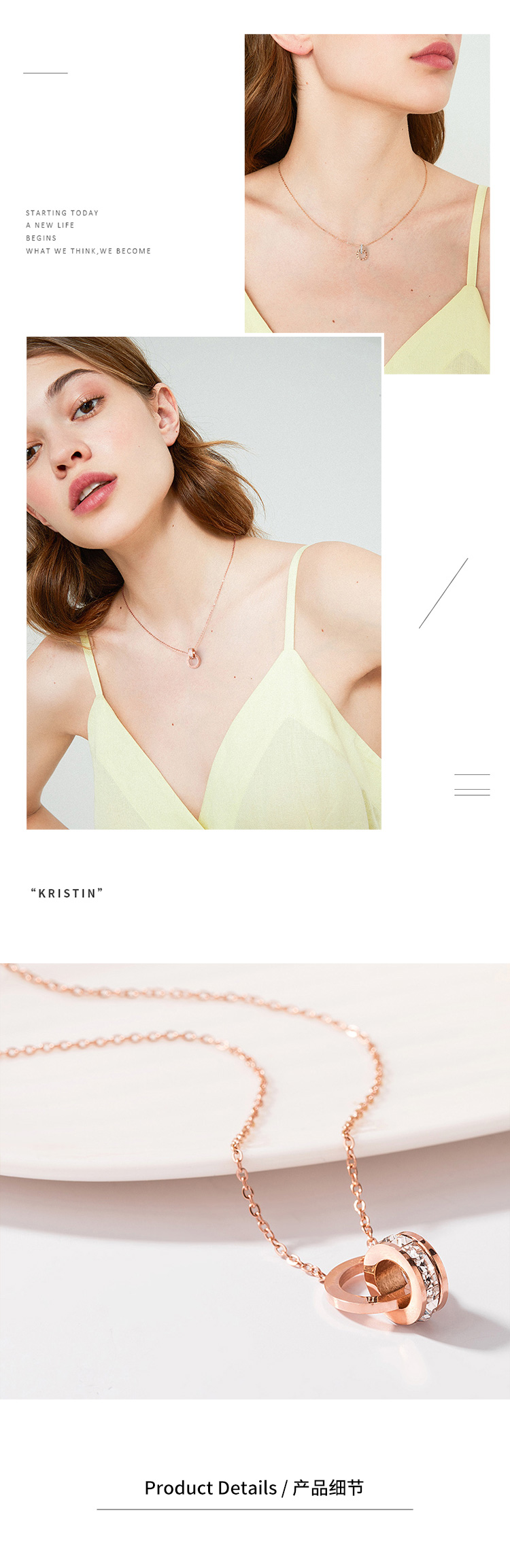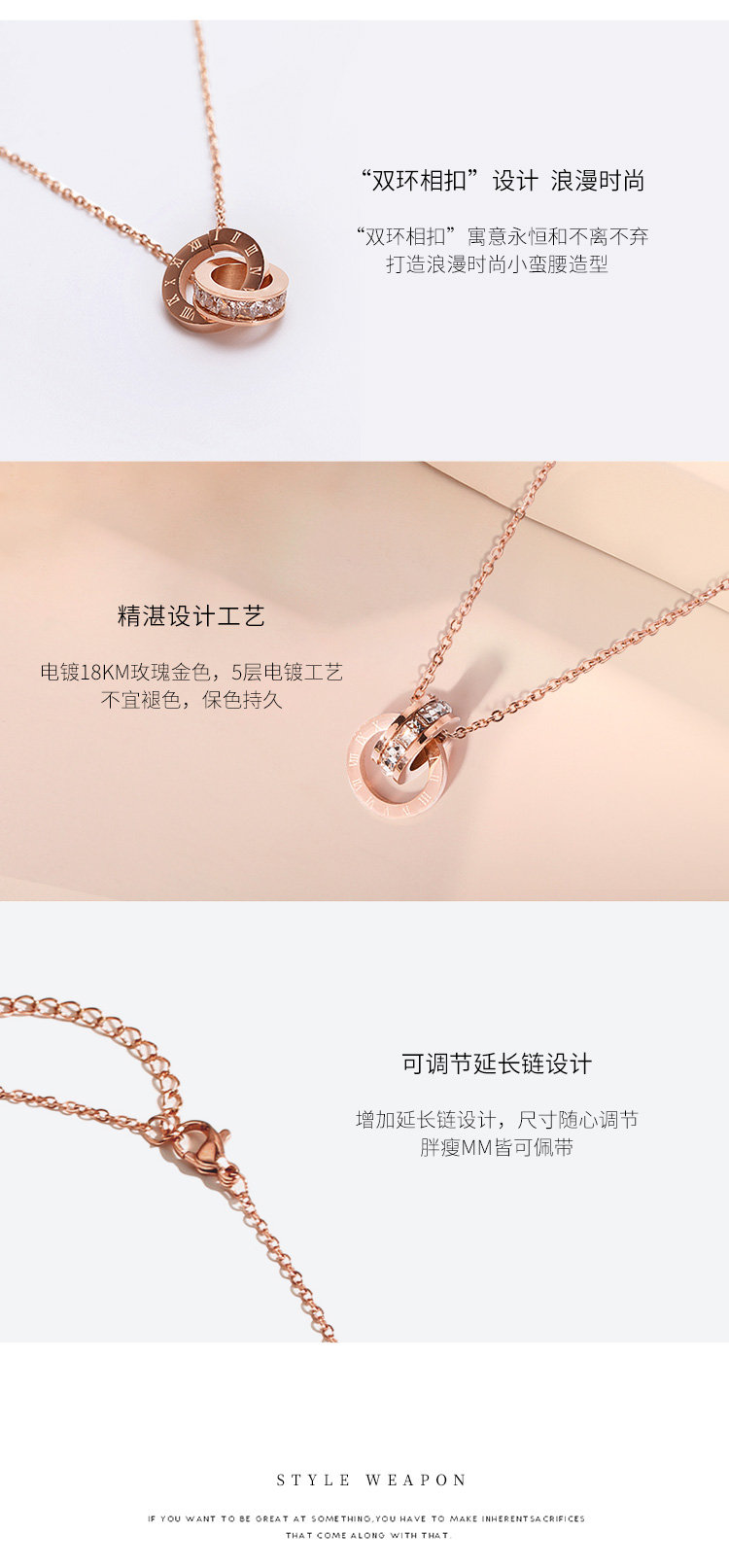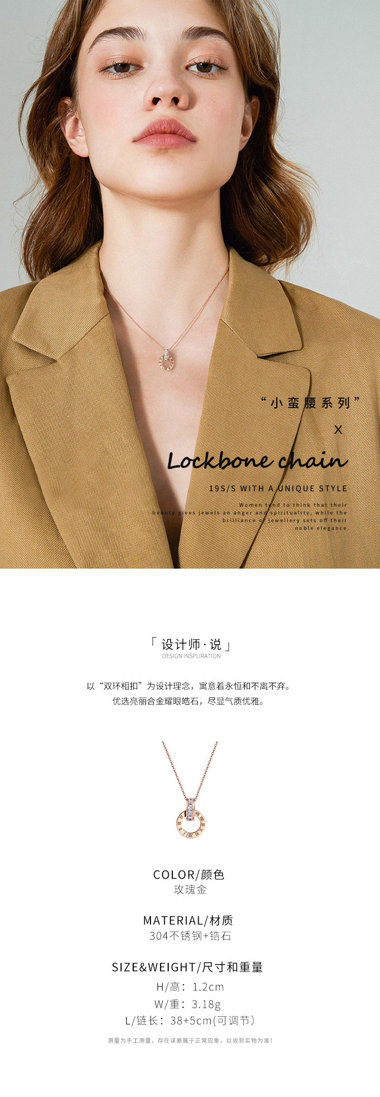 GL轻奢小蛮腰锆石锁骨链罗马数字双环项链女简约时尚学生配饰品吊坠GLON028HH1