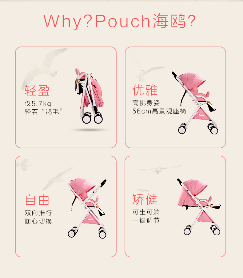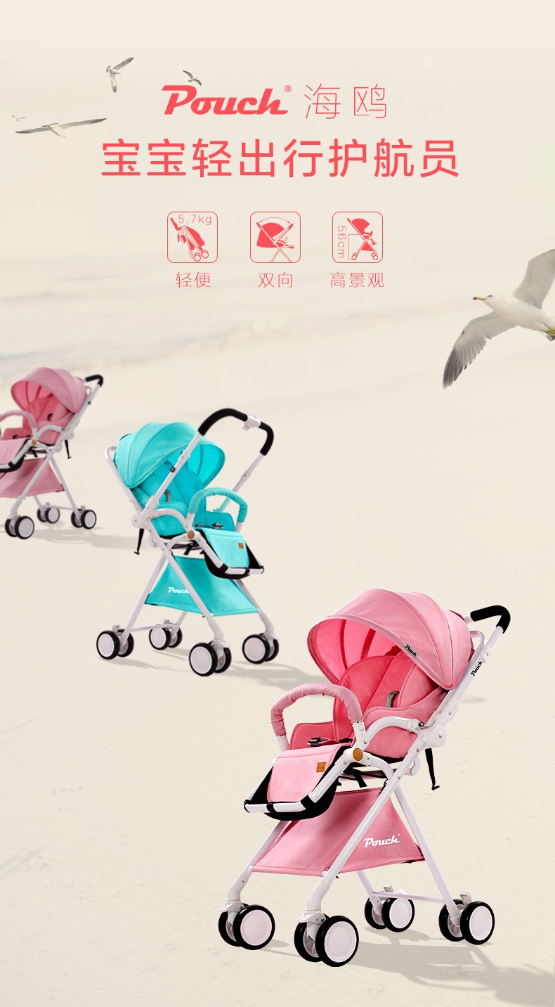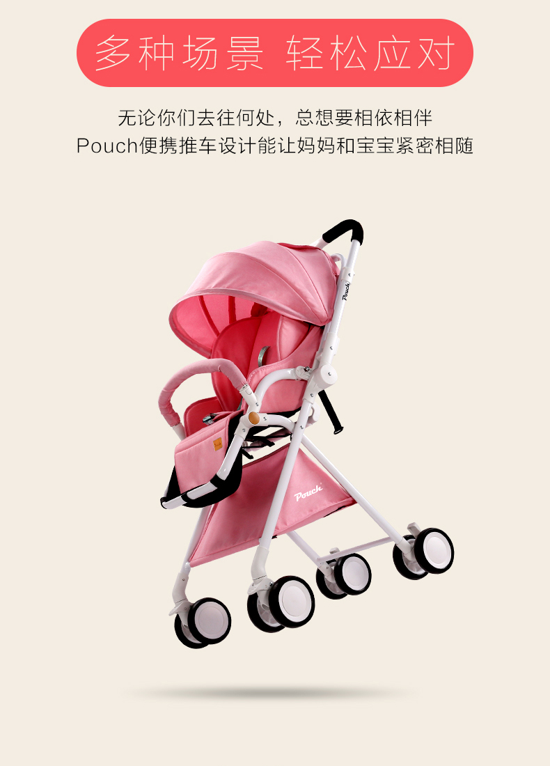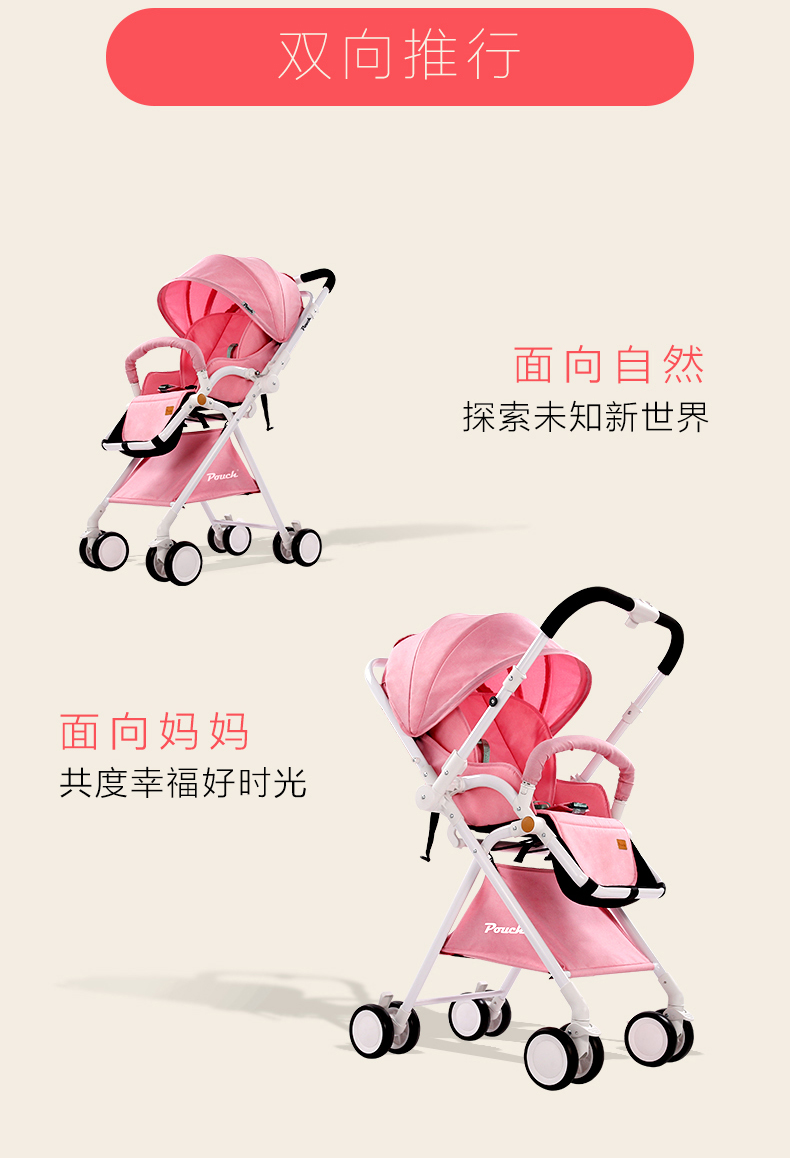 Pouch双向婴儿手推车轻便高景观a06-藕粉色