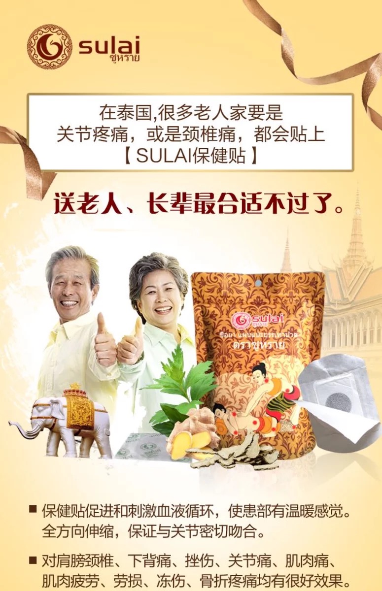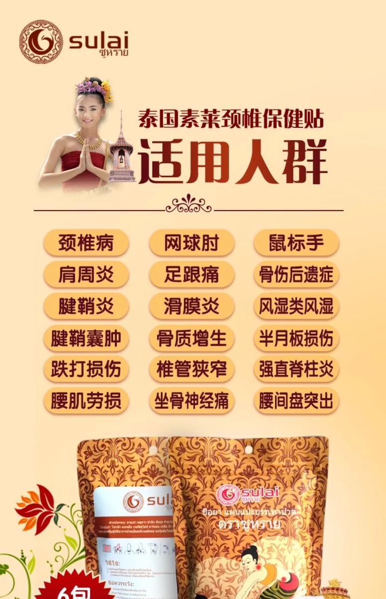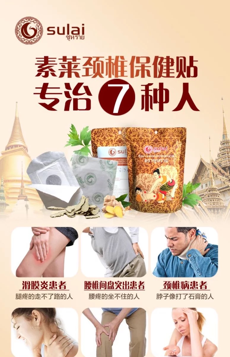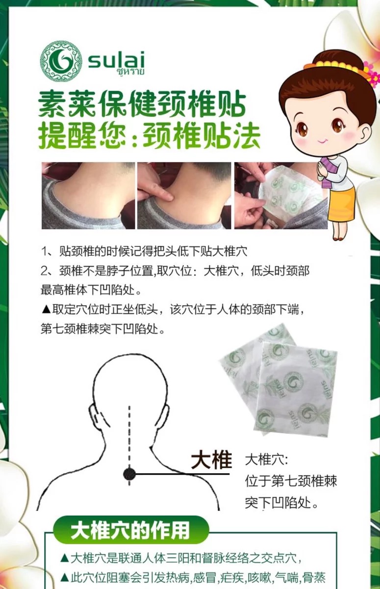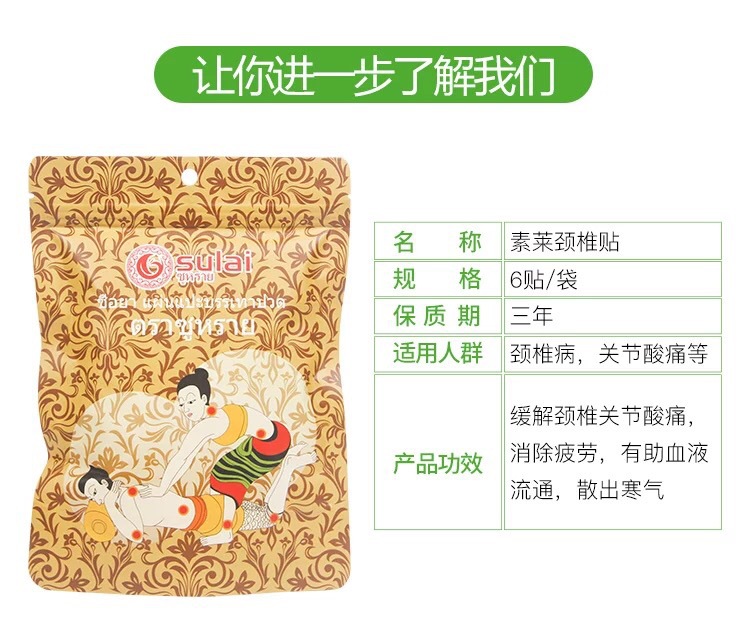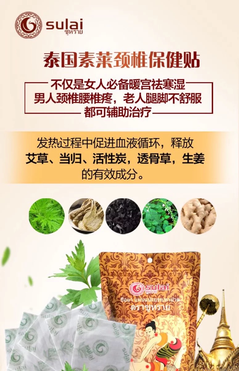 泰国素莱sulai发热颈椎贴肩颈贴电脑低头族老人关节腰部酸痛贴膏