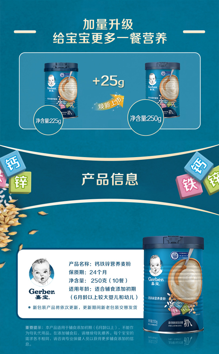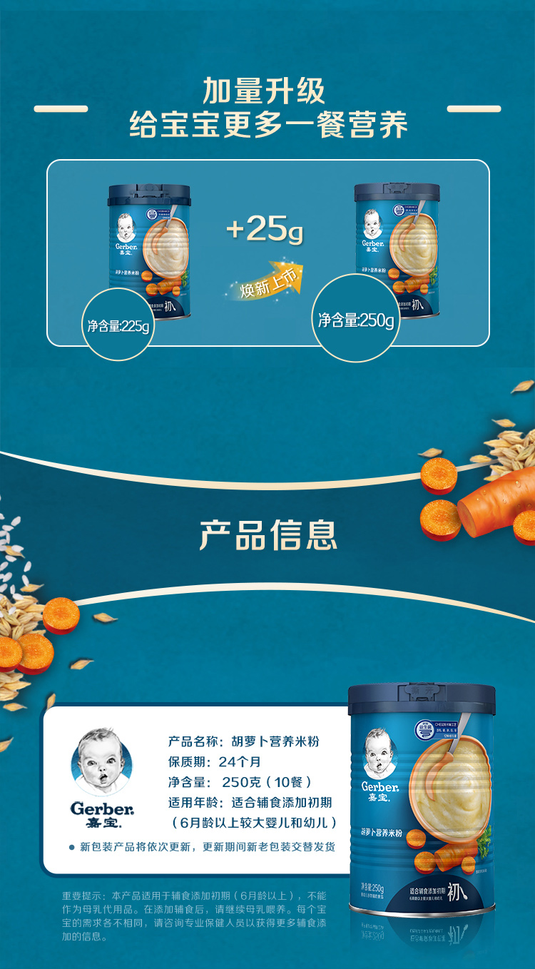 嘉宝营养米粉3罐装(原味+钙铁锌+胡萝卜)适合各阶段宝宝