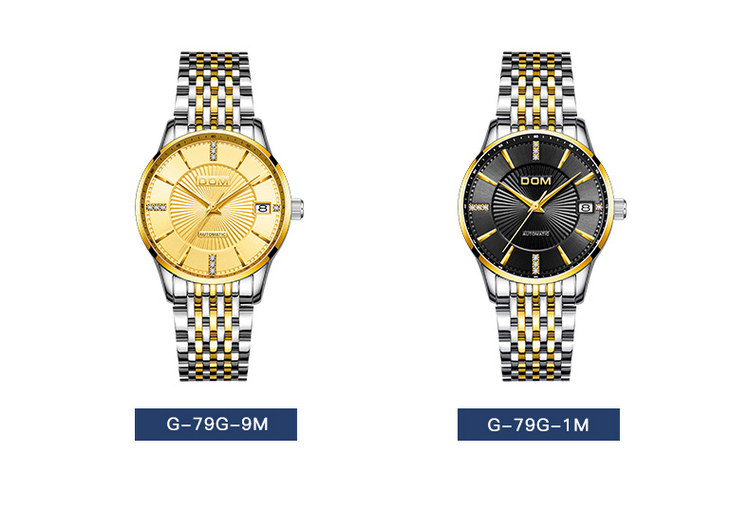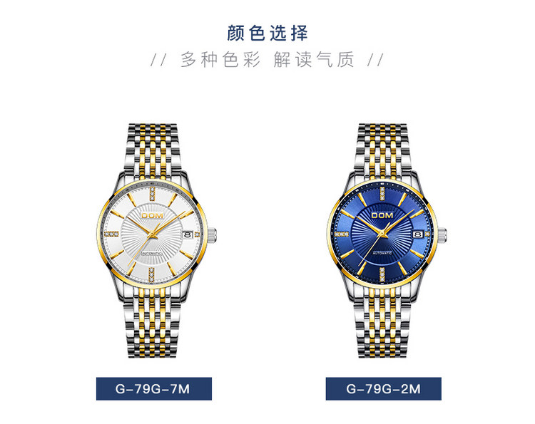 多姆(DOM)手表女夜光防水全自动机械表G-79G-1M黑色