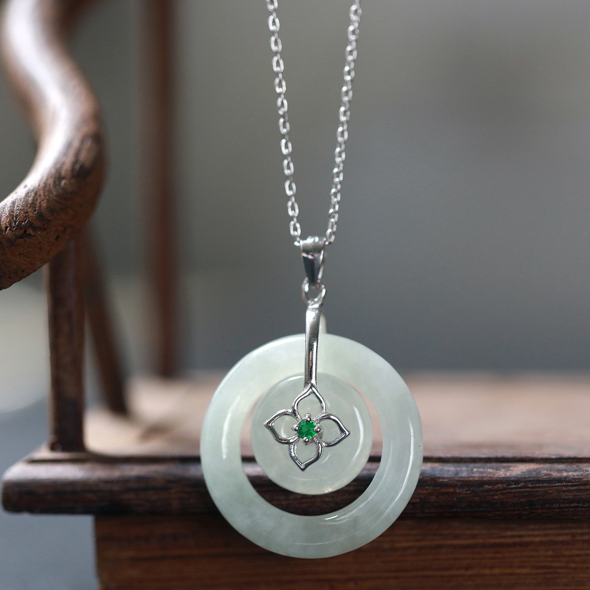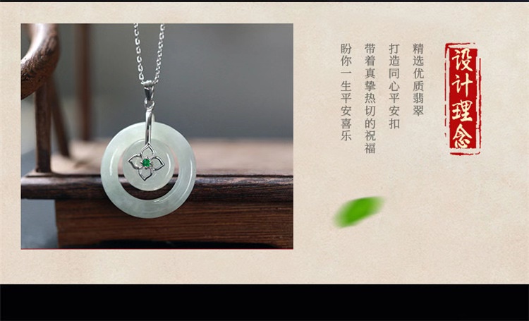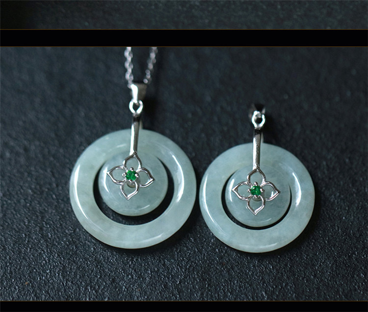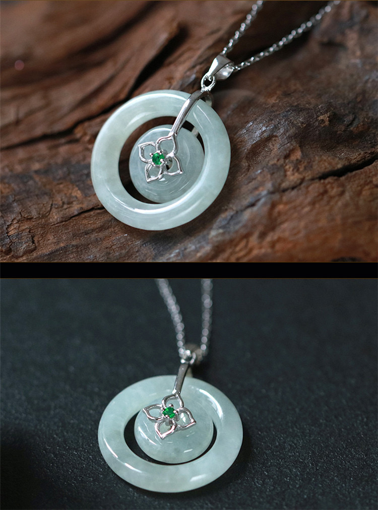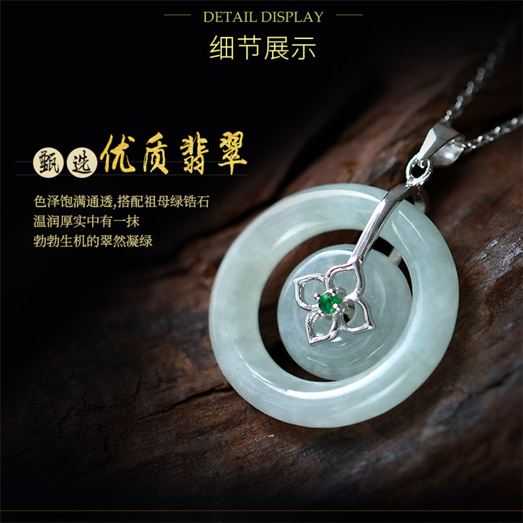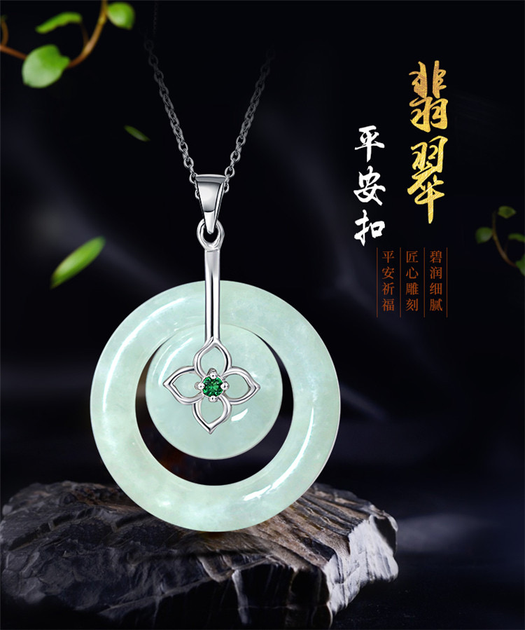 四福珠宝 s925银天然A货翡翠平安扣吊坠福佑平安颈饰 送银链