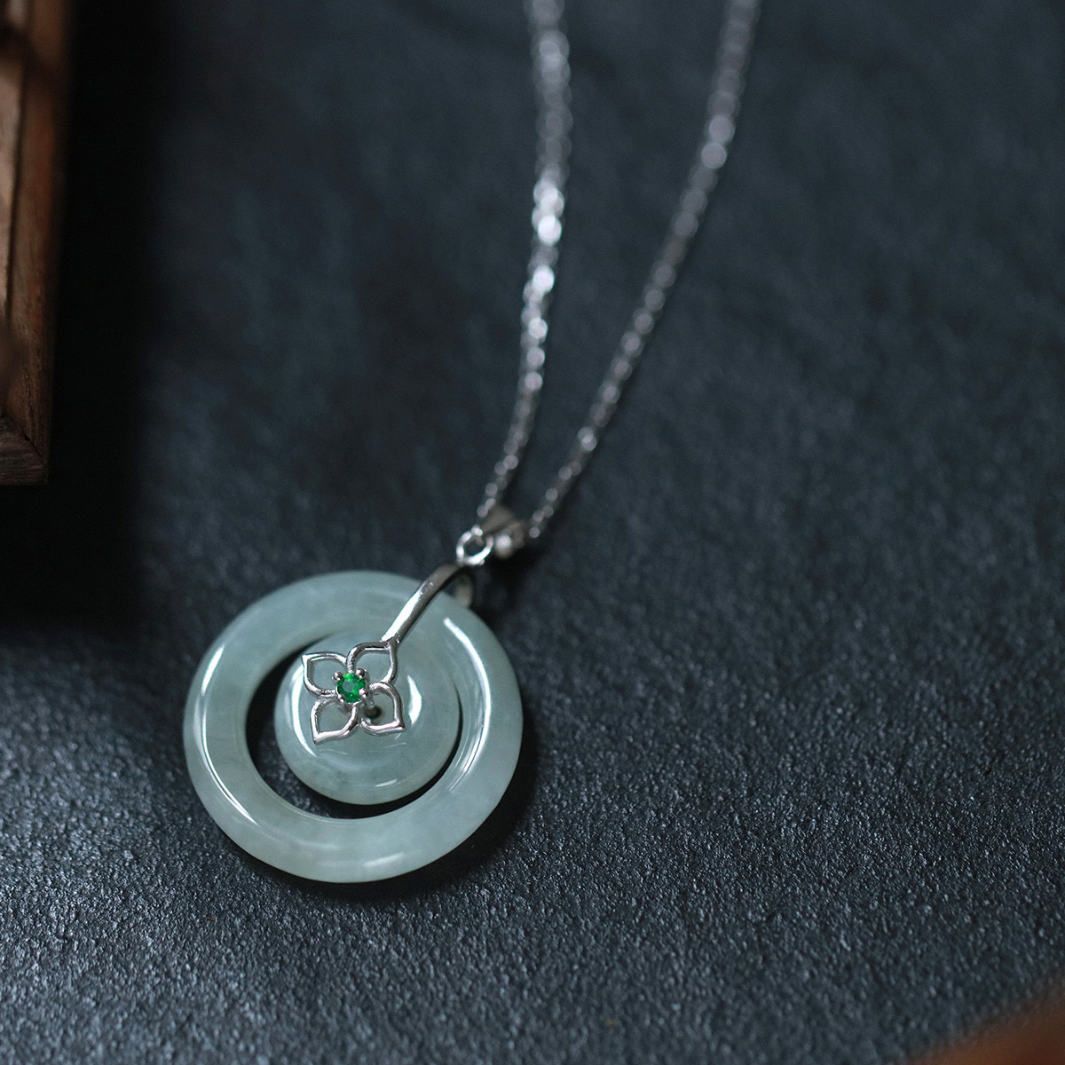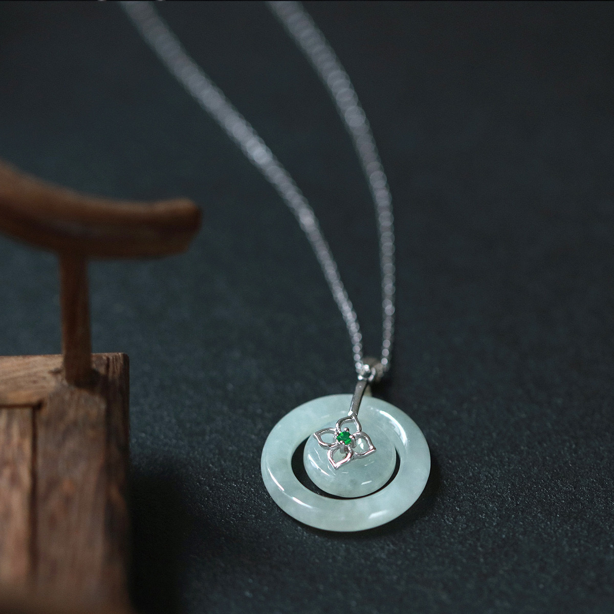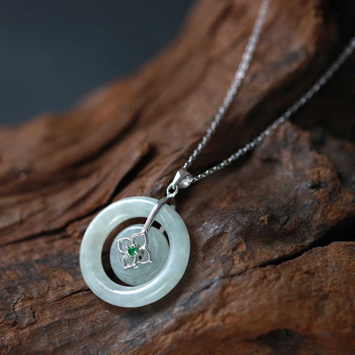 四福珠宝 s925银天然A货翡翠平安扣吊坠福佑平安颈饰 送银链