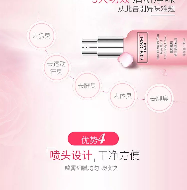 COCOVEL/蔻露薇 香体露女爽身止汗喷雾腋下去异味止汗露去液男 30ml