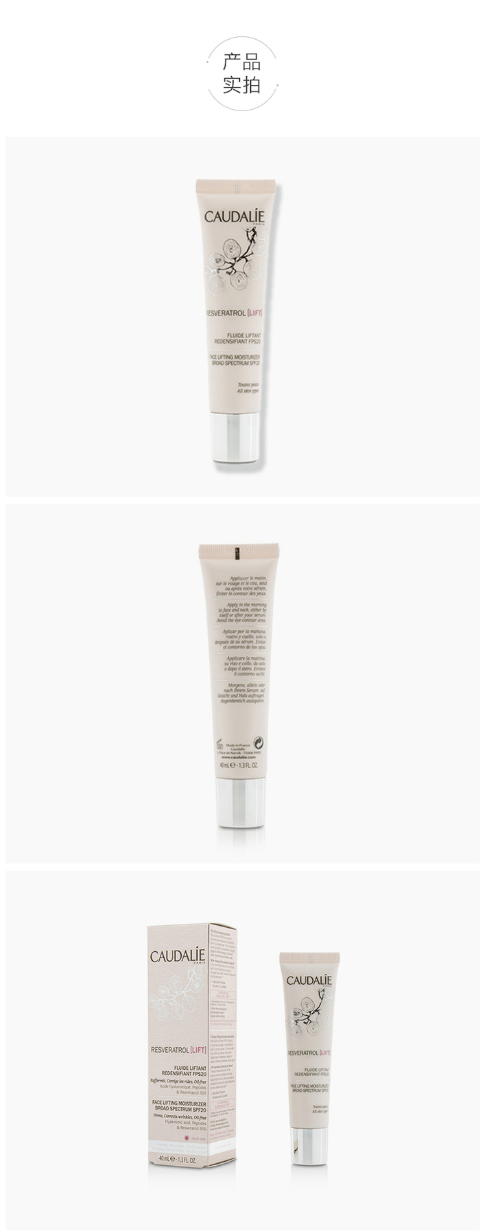 【法国直邮】 欧缇丽 Caudalie 白黎芦醇防晒乳 SPF 20 保湿滋润防晒 紧致 瑕疵 40ml