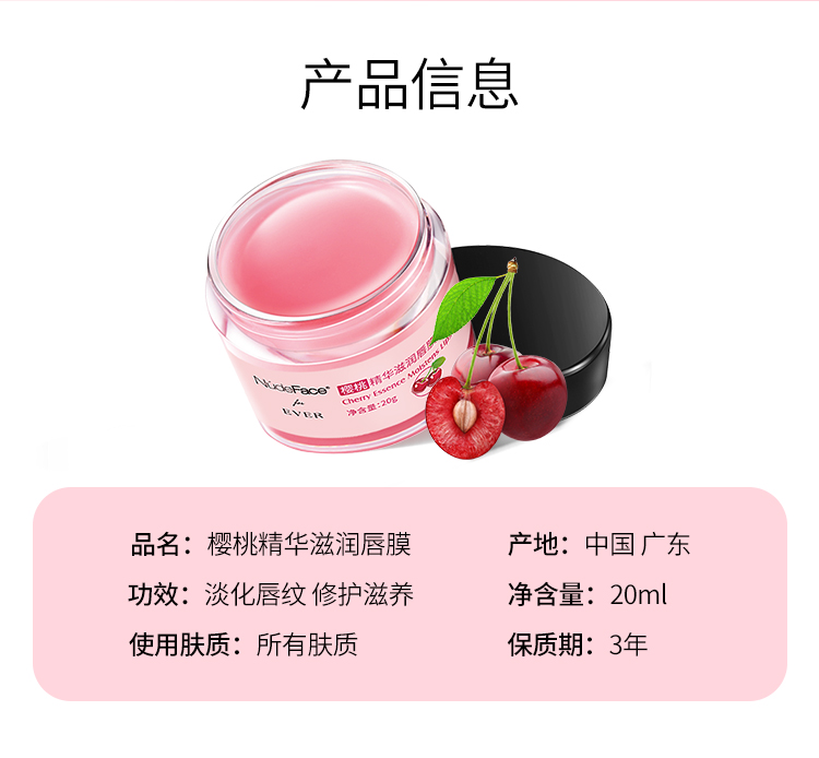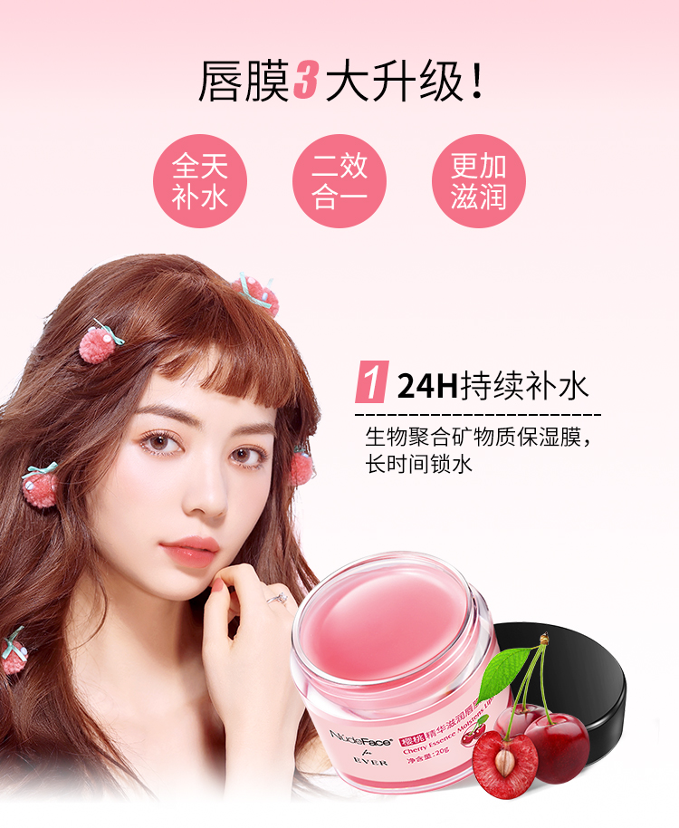 您所在的位置:首页 > 美妆护肤  > 面部护肤 > 唇膜/唇部精华  > 裸妆优品NudeFace 樱桃精华滋润唇膜 20g