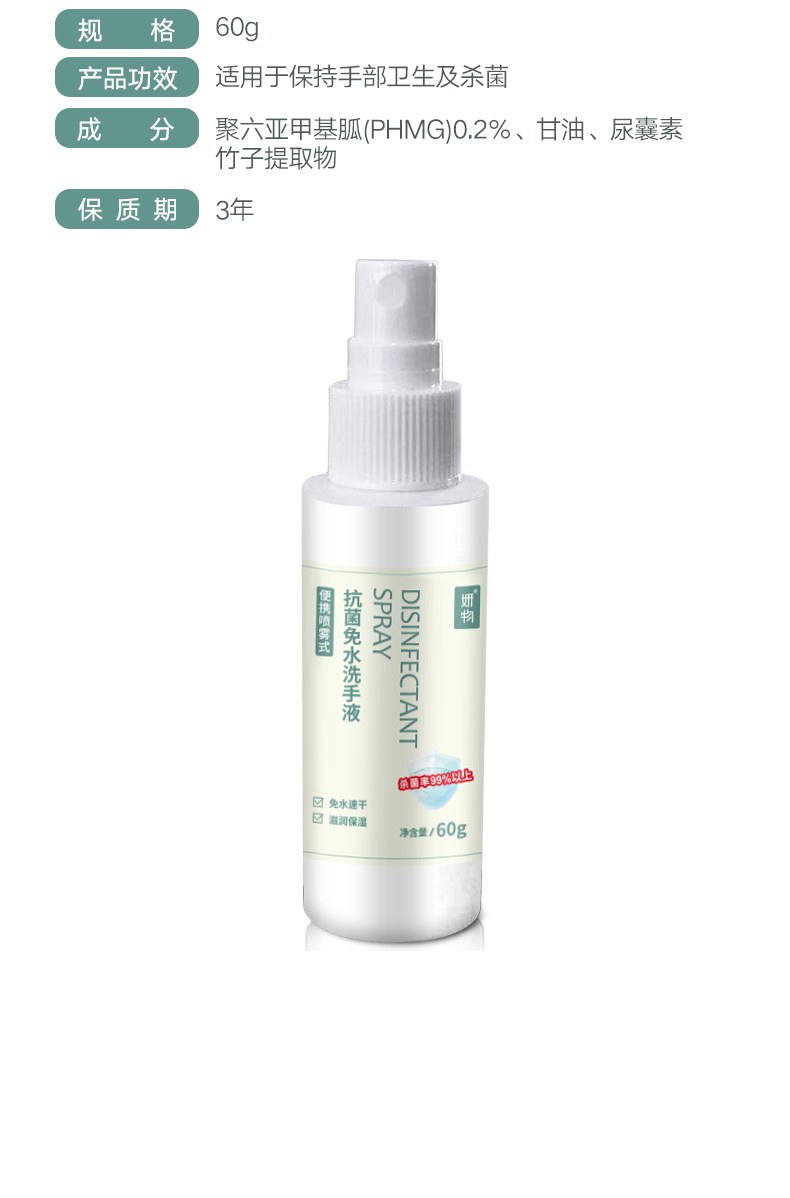 妍物 抗菌免水洗手喷雾60g