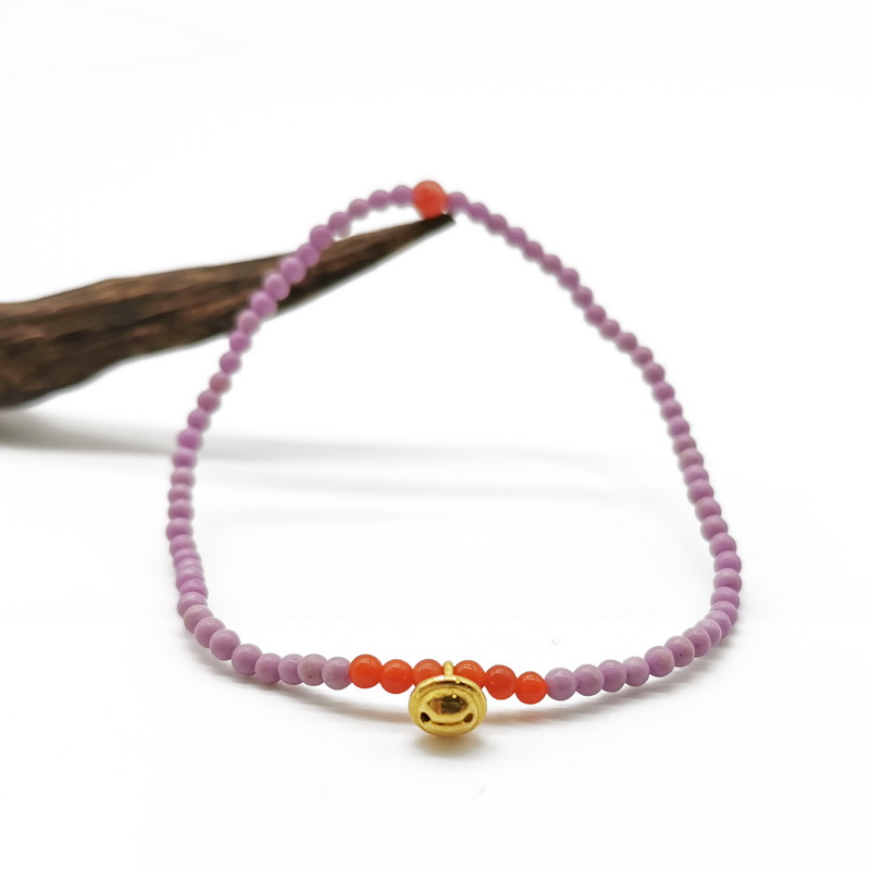 四福珠宝 足金铃铛 路路通配紫云母与南红手串