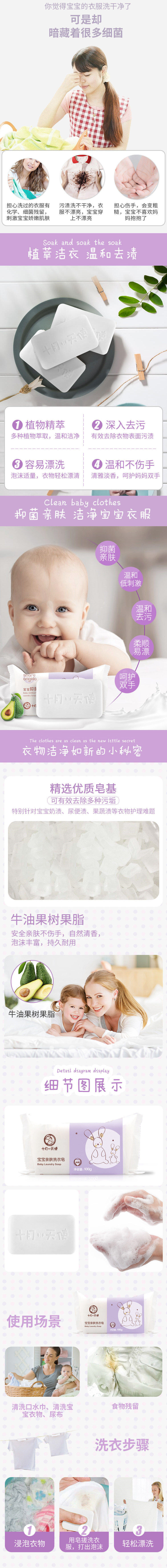 十月小天使宝宝抑菌洗衣皂宝宝洗衣皂尿布皂洗衣服去污皂200克*2块