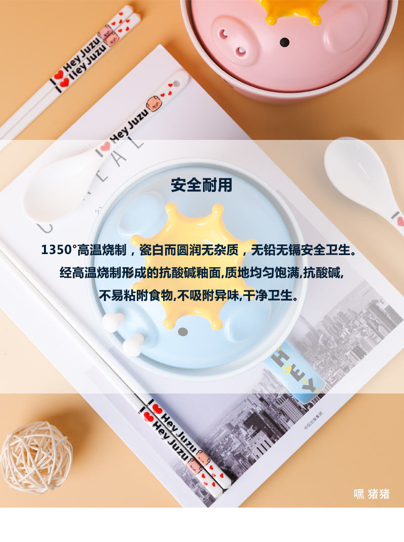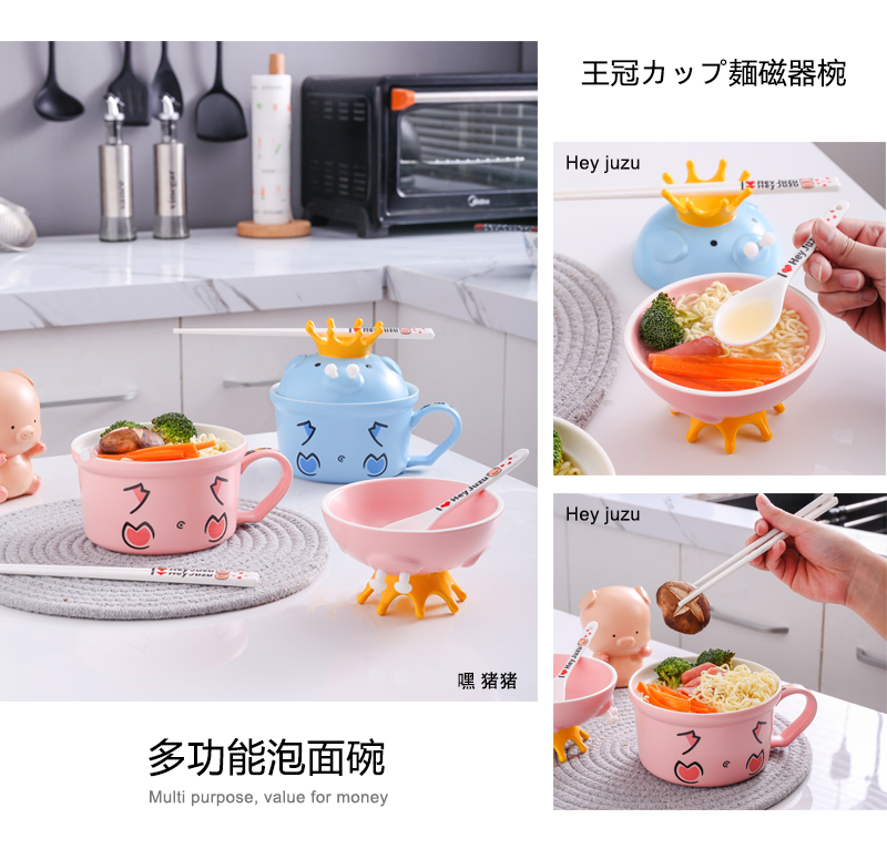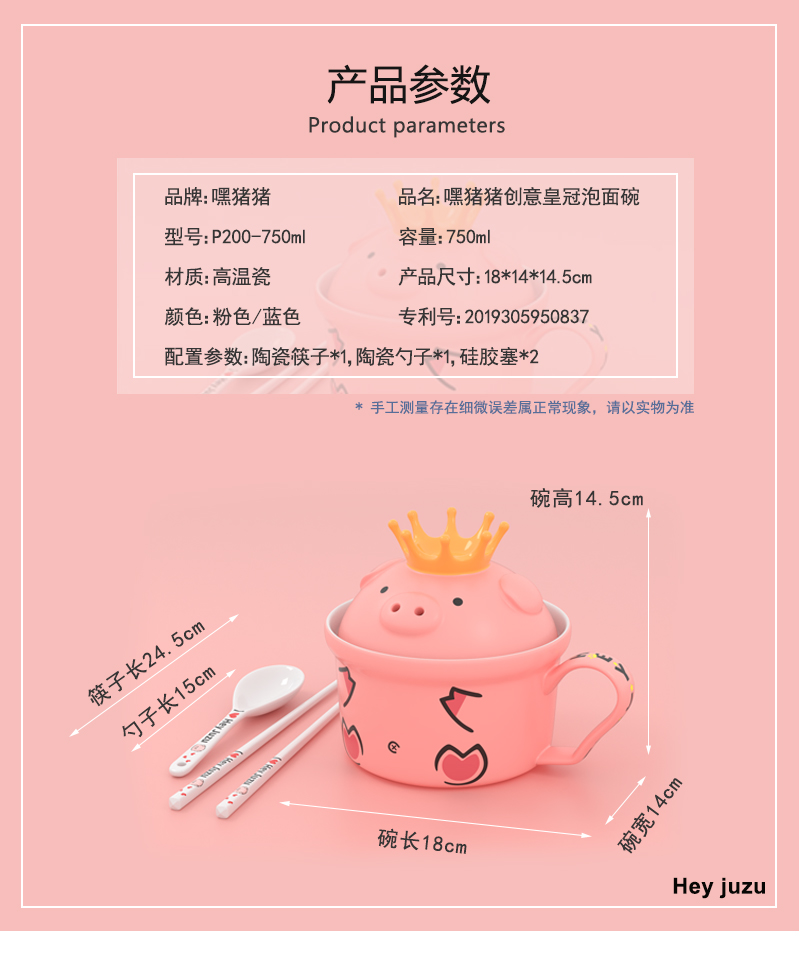唯都嘿猪猪创意皇冠泡面碗P200-2 网红泡面碗750ML蓝色