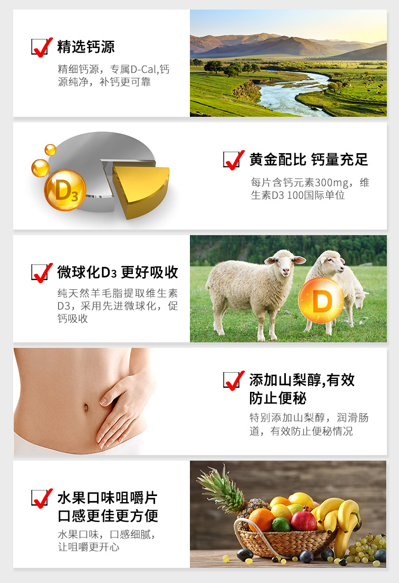 D-CAL成人维D钙水果味咀嚼片 妈妈钙 300mg 60粒/瓶