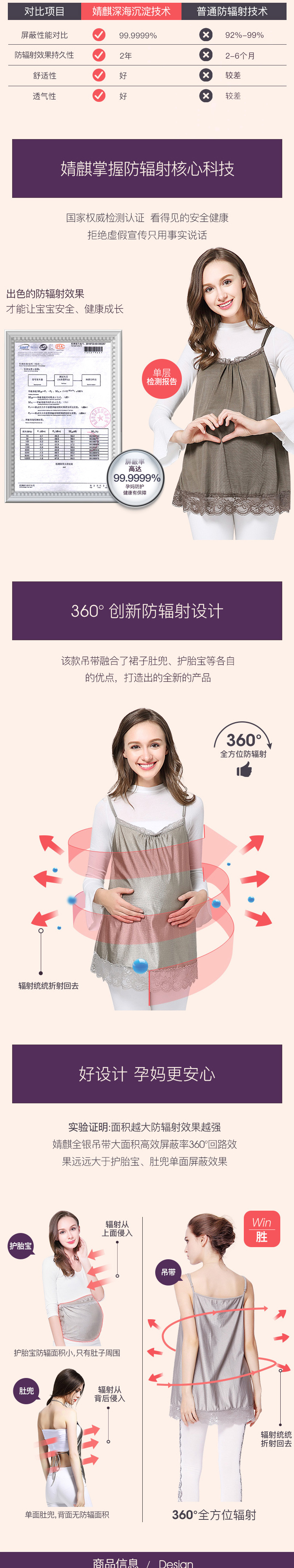 婧麒全银纤维吊带防辐射孕妇装 银灰色XXL码