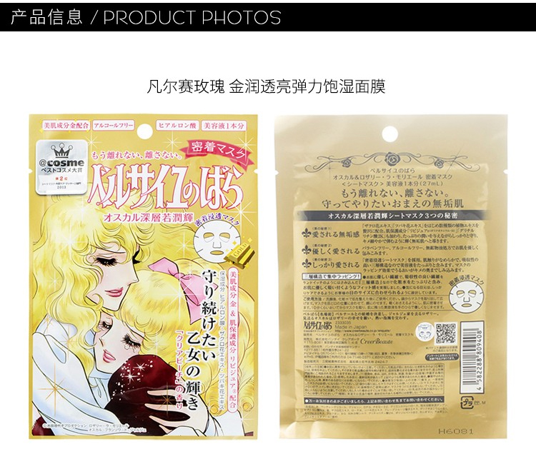 日本凡尔赛面膜CreerBeaute美少女补水 金色-紧致弹力嫩肤(单片装无外盒)