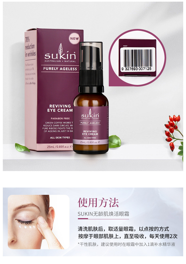 SUKIN苏芊 无龄肌抗衰老焕活眼霜 25ML/瓶