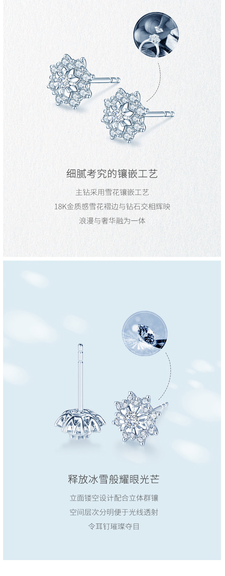 佐卡伊 初雪 18k金气质设计感钻石耳钉