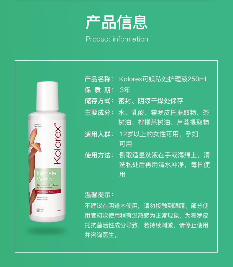 【授权商品】新西兰kolorex女性无皂私处护理液250ml