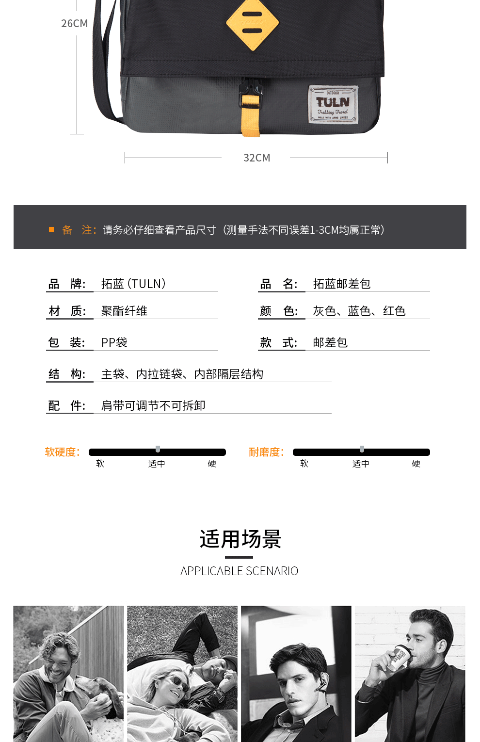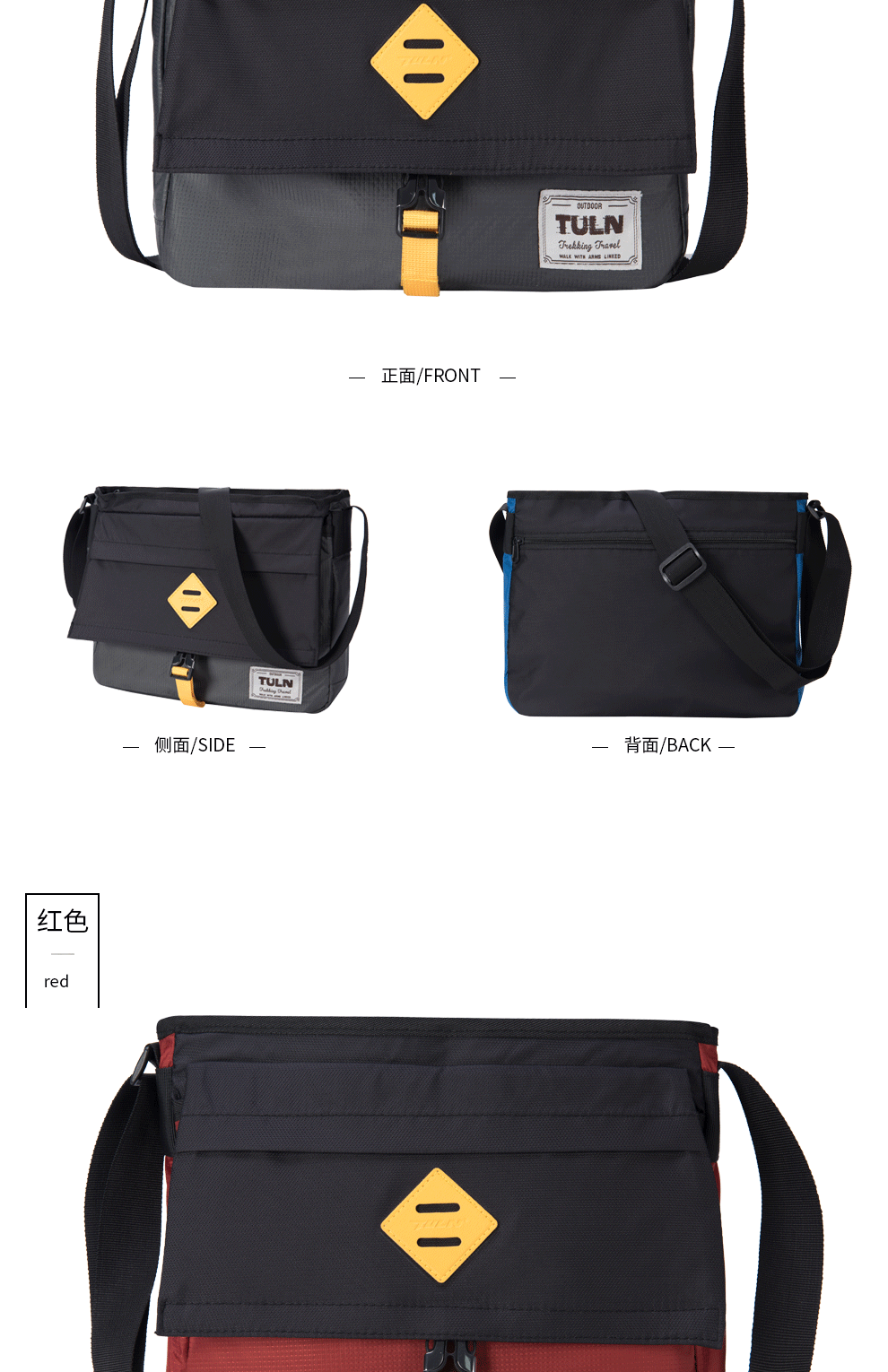 拓蓝(TULN)男士单肩斜跨包邮差包多功能防泼水潮包 红色