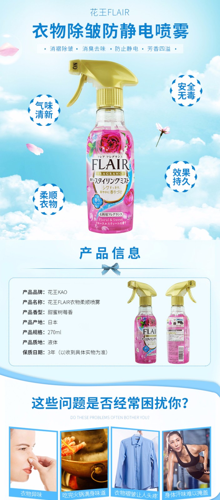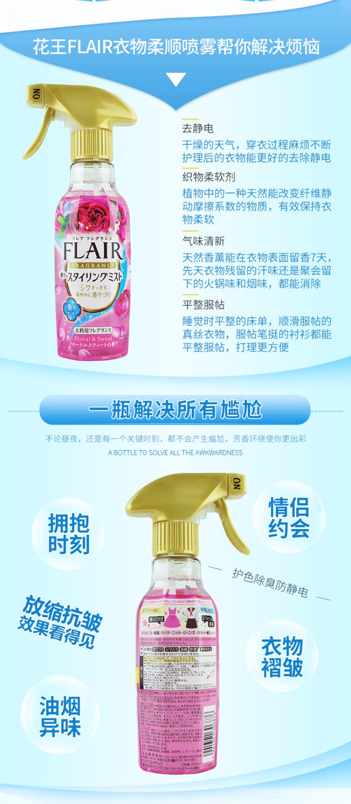 花王FLAIR衣物防静电喷雾270ml 甜蜜花香味
