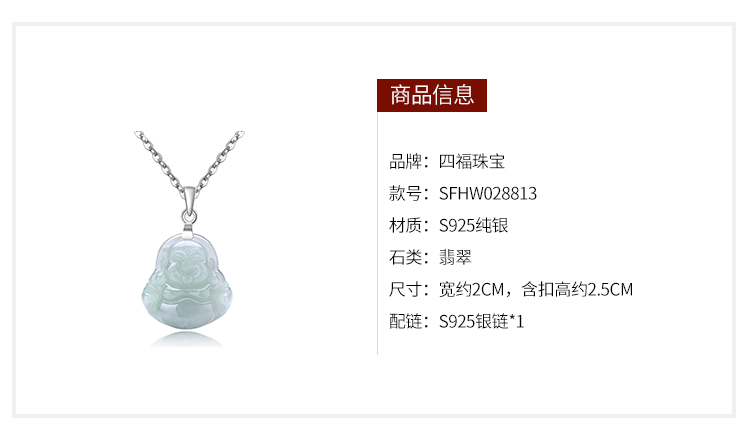 您所在的位置:首页 > 珠宝首饰  > 珠宝首饰 > 翡翠玉石  > 四福珠宝 S925银镶翡翠平安佛吊坠