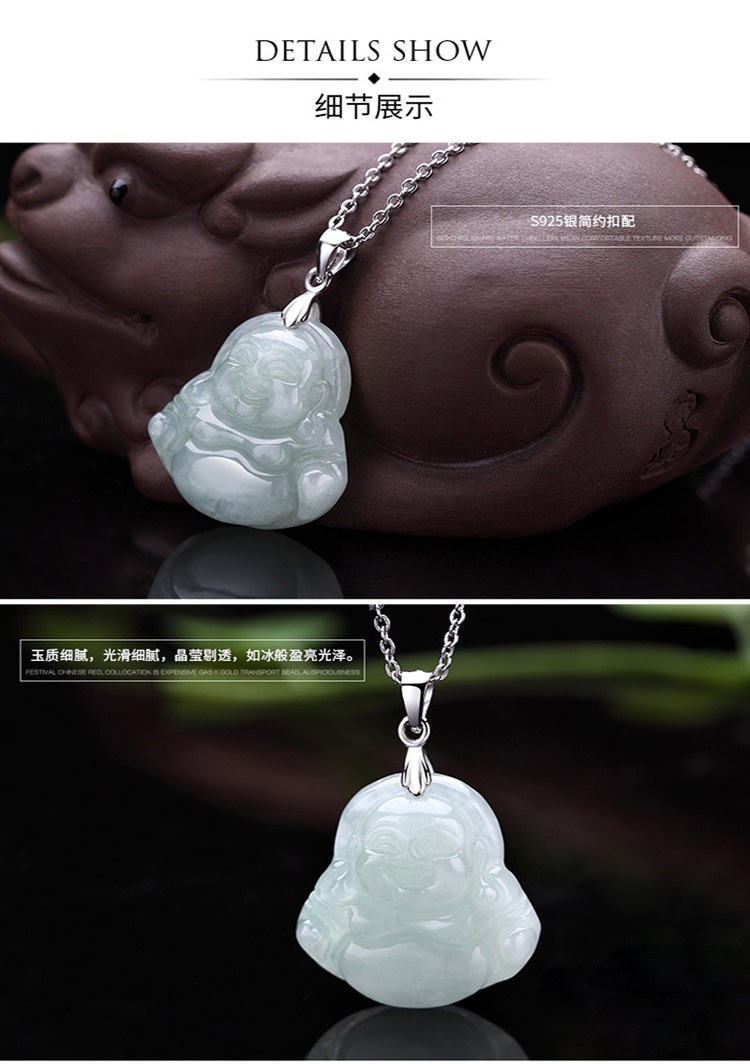 四福珠宝 S925银镶翡翠平安佛吊坠