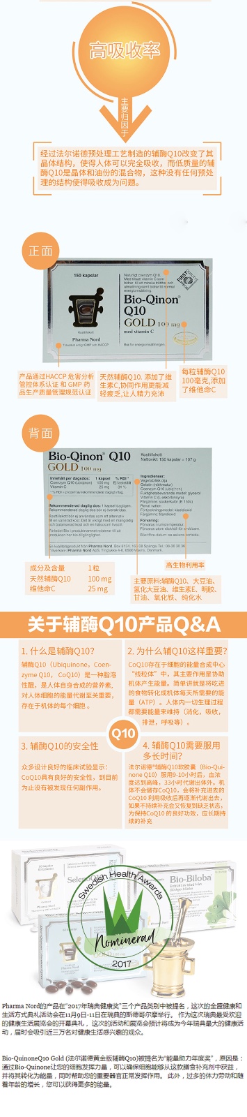 【瑞典直邮】Pharma Nord 法尔诺德黄金辅酶Q10 100mg 150粒