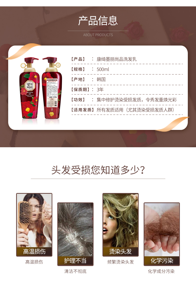 韩国康绮墨丽DAENG GI MEO RI尚品滋养修护洗发乳500ml(赠送护发素中样50ml)