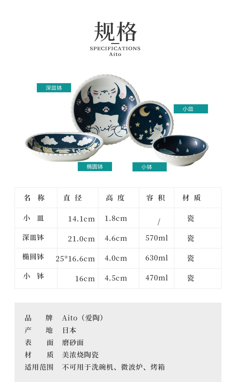 您所在的位置:首页 > 家居日用  > 餐具 > 碟子  > 日本原产AITO CAT on SUNDAY美浓烧陶瓷深口盘 小钵:約φ16×H4.5cm