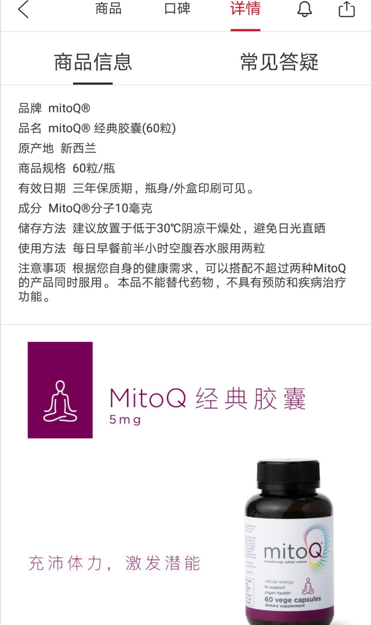 新西兰 MitoQ 经典胶囊(60粒)新包装