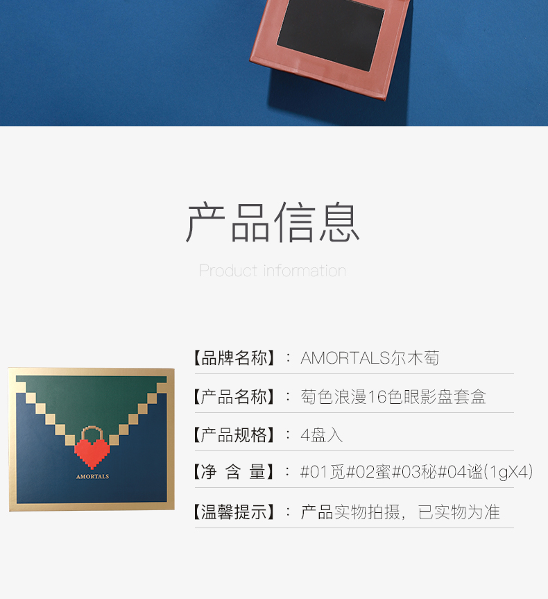 韩国AMORTALS尔木萄眼影盘情书16色ins超火便携四色