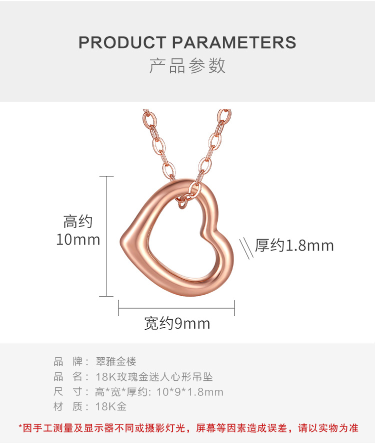 翠雅金楼 18K金心形吊坠
