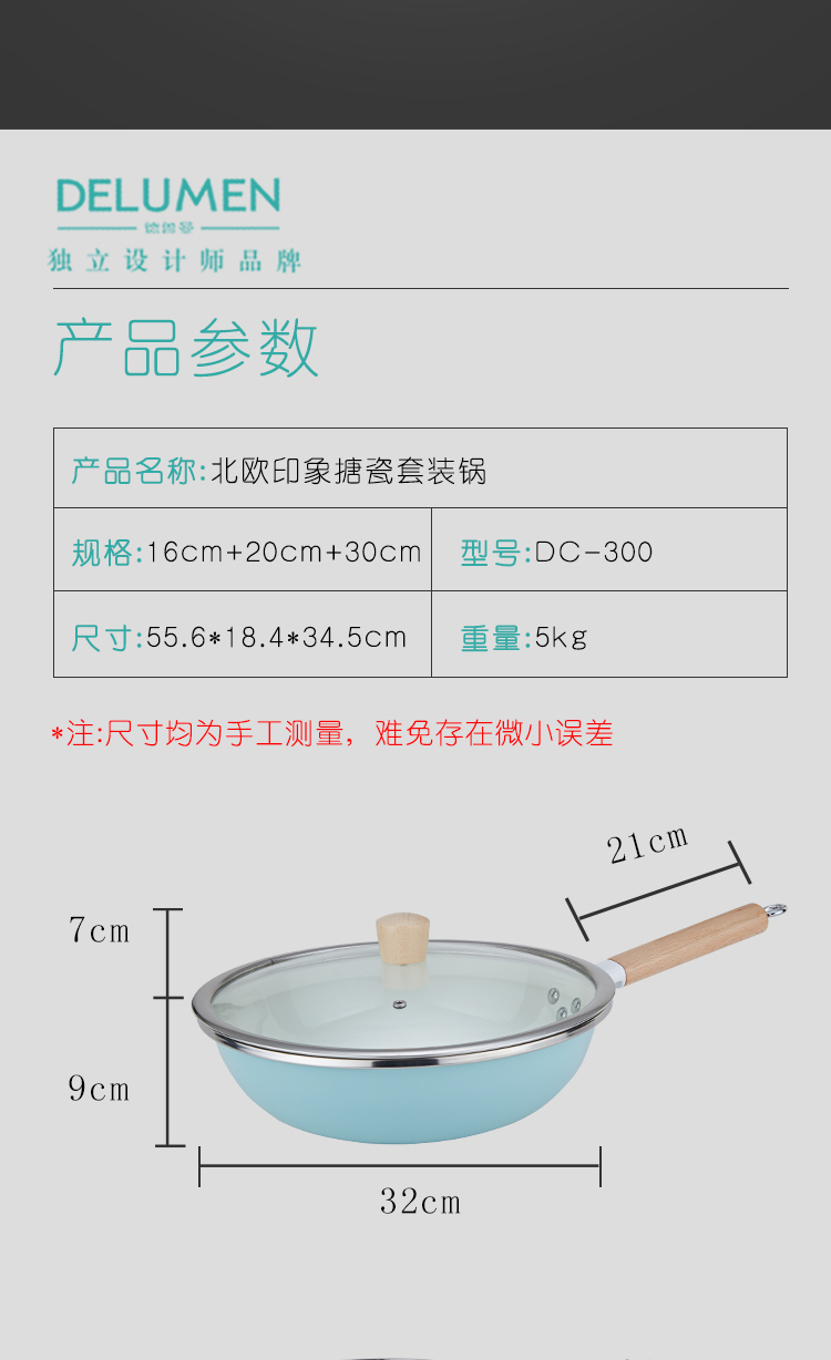 德鲁曼北欧印象搪瓷套装锅DC-300 规格16CM+20CM+30CM