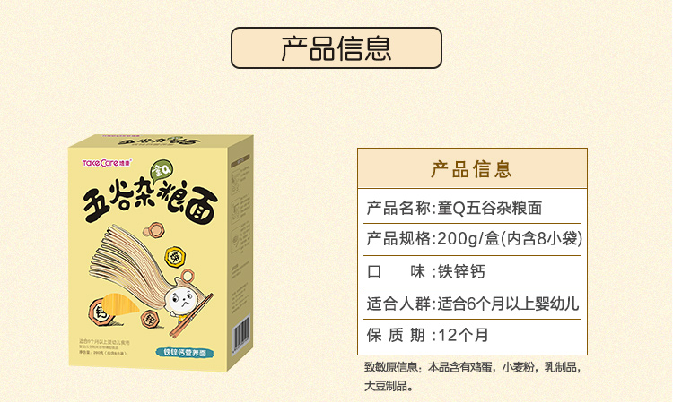 培康 Take Care 婴幼儿宝宝辅食 五谷杂粮面铁锌钙营养面 200g/盒