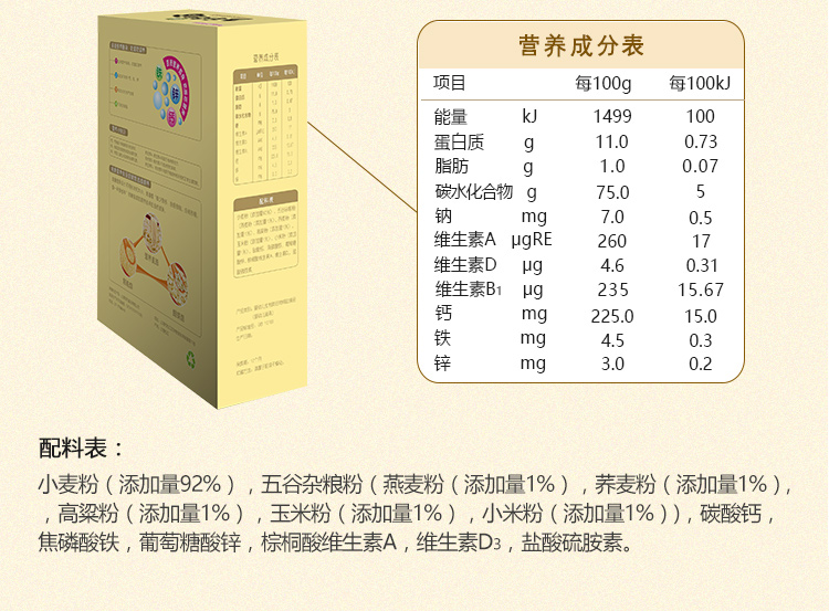 您所在的位置:首页 > 母婴用品  > 母婴用品 > 营养辅食  > 培康 Take Care 婴幼儿宝宝辅食 五谷杂粮面铁锌钙营养面 200g/盒