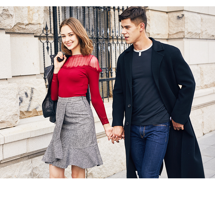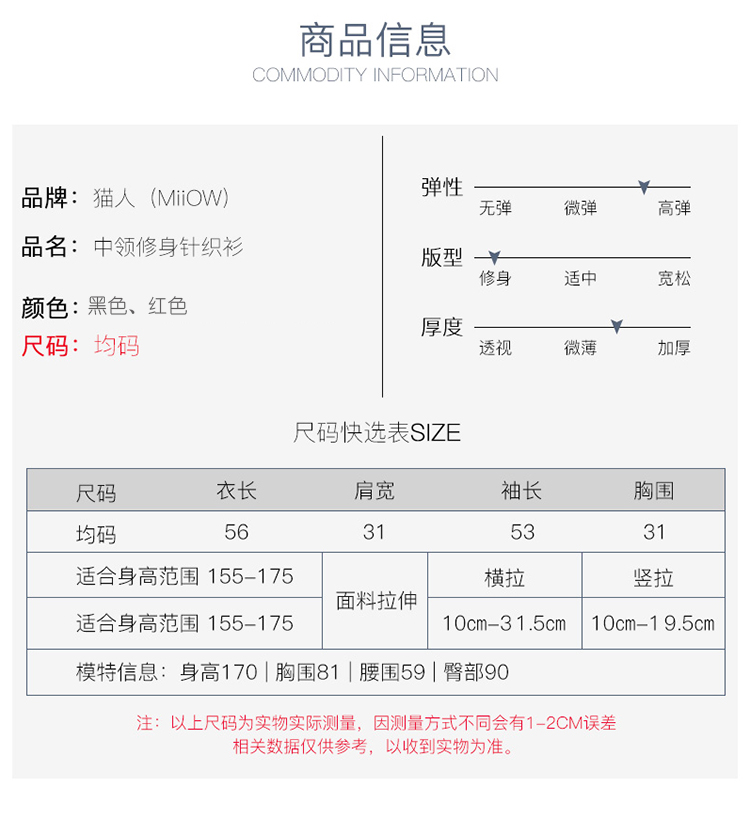 猫人Miiow新款蕾丝拼接针织衫女中领修身保暖上衣MOU809201