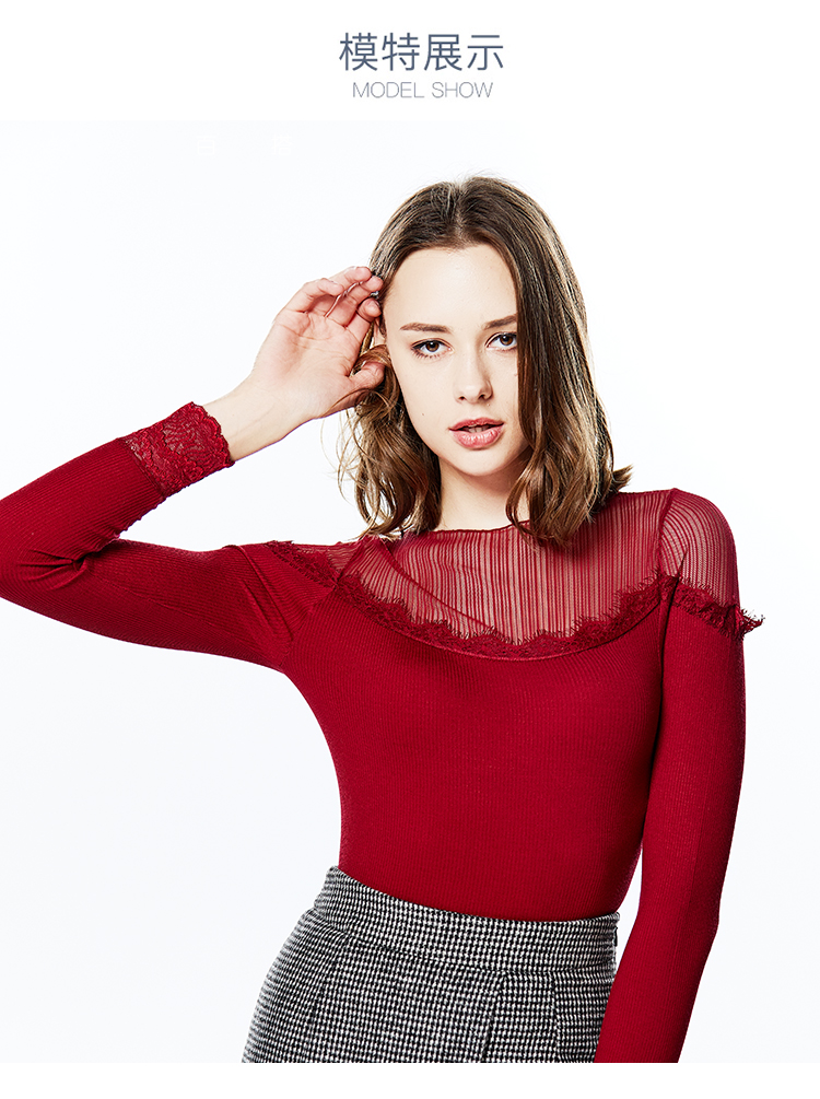 您所在的位置:首页 > 服饰内衣  > 内衣 > 保暖内衣  > 猫人Miiow新款蕾丝拼接针织衫女中领修身保暖上衣MOU809201