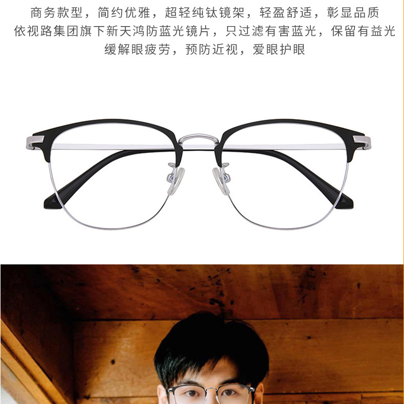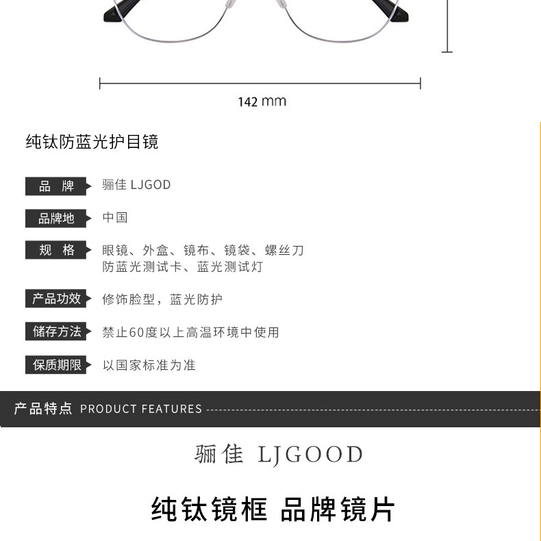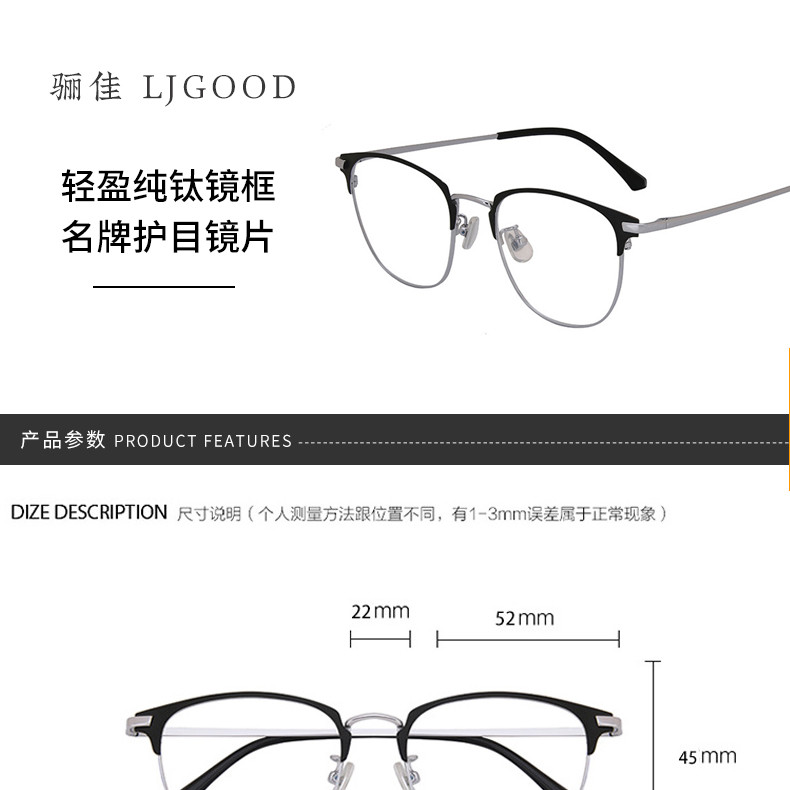 中国 LJGOOD/骊佳 超轻纯钛防蓝光眼镜框 4004 黑金色