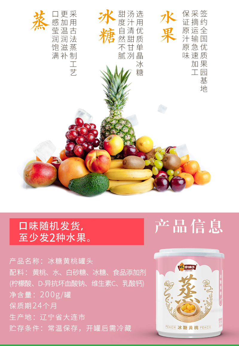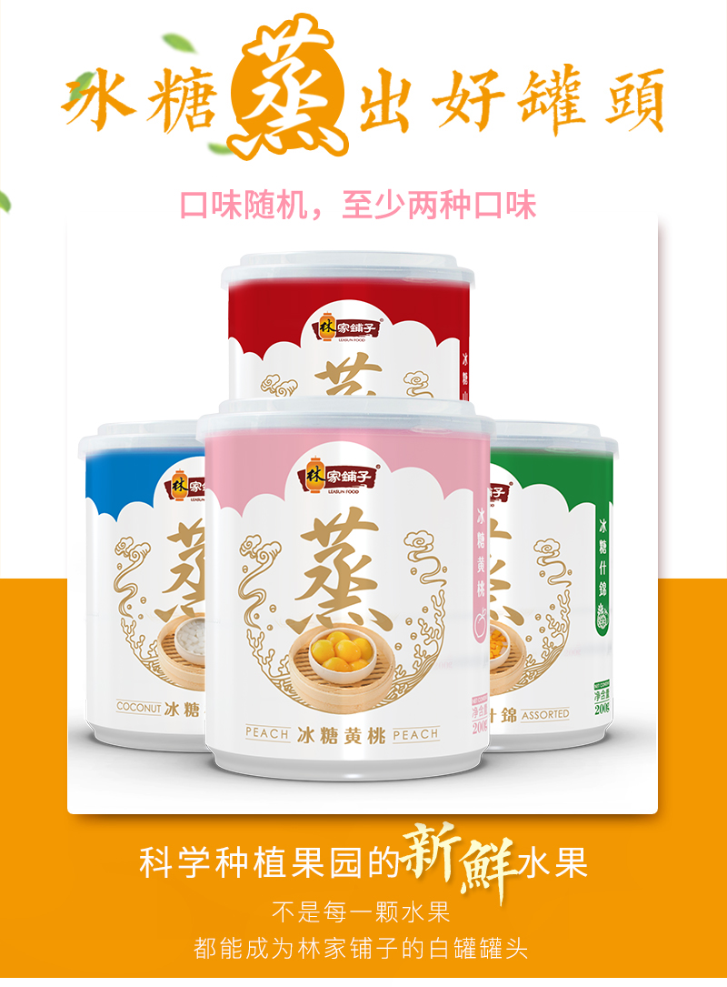 您所在的位置:首页 > 休闲食品  > 粮油调味 > 方便食品  > 林家铺子冰糖黄桃什锦椰果混合罐头200g*4罐新鲜水果儿童罐头