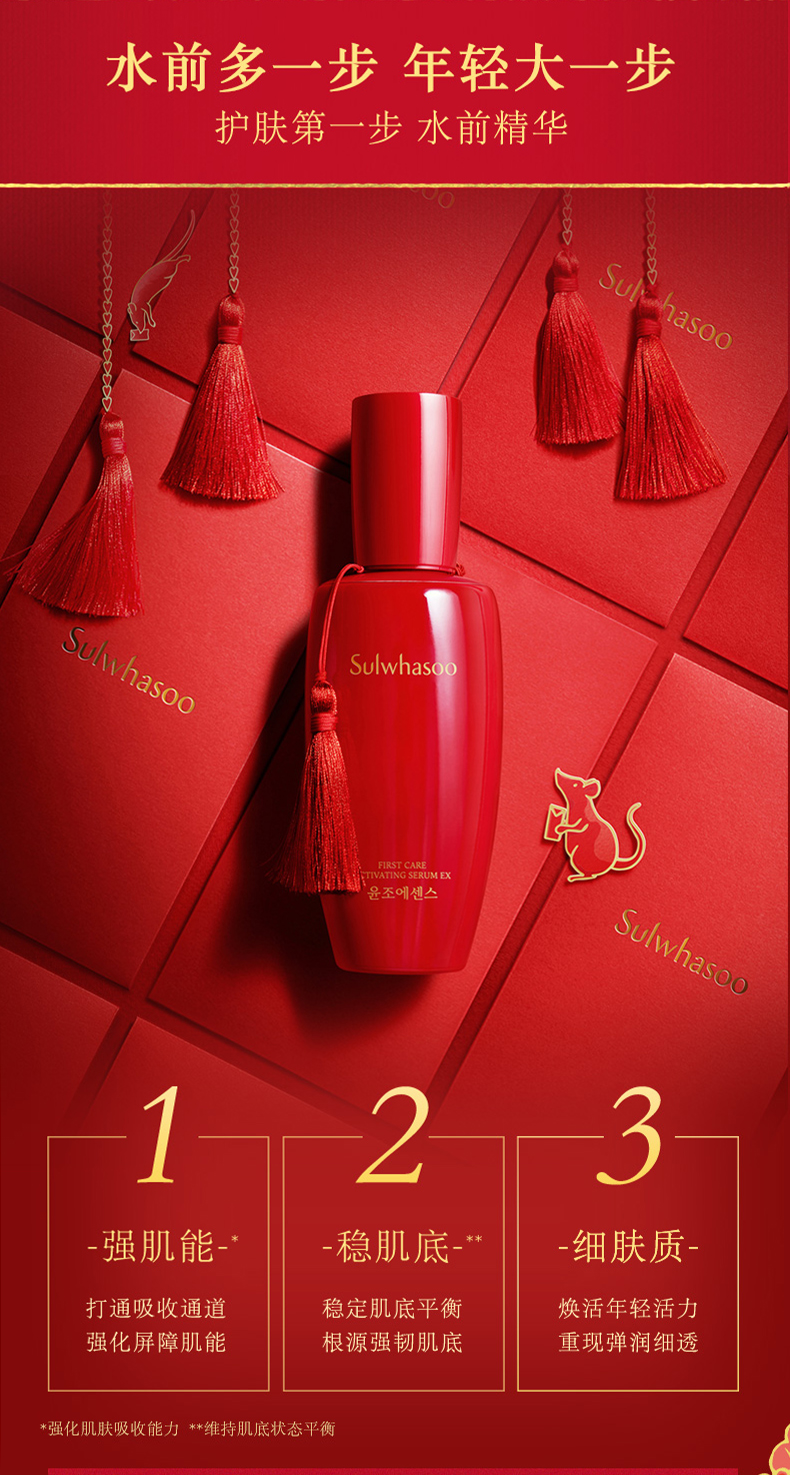 您所在的位置:首页 > 美妆护肤  > 面部护肤 > 面部精华  > Sulwhasoo 雪花秀 润致焕活肌底精华露 节日限量版 润燥精华120ml