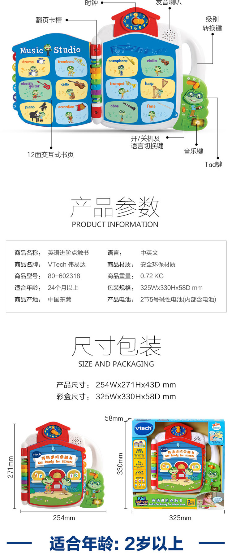 伟易达(Vtech)早教机宝宝有声点读书幼儿中英启蒙儿童礼物 英语进阶点触书80-602318