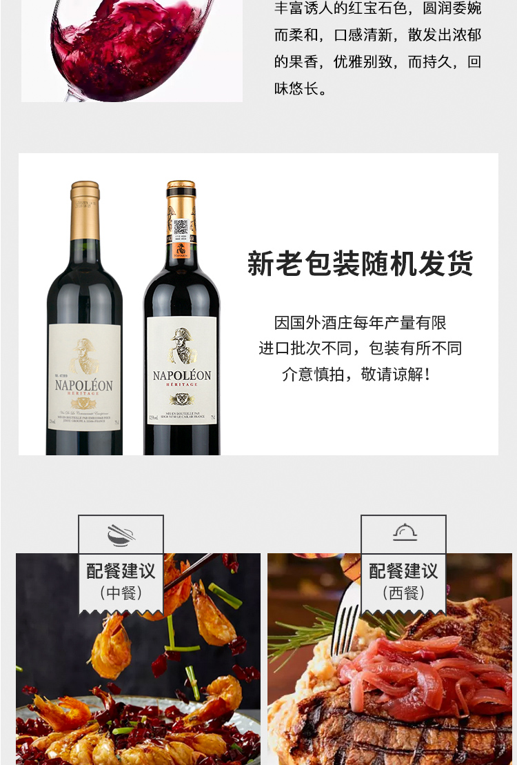 法国进口拿破仑传承干红750ml*2 礼盒装
