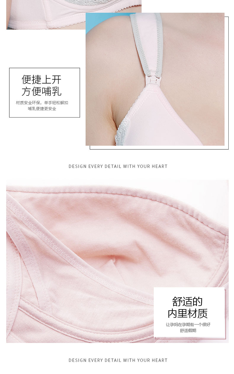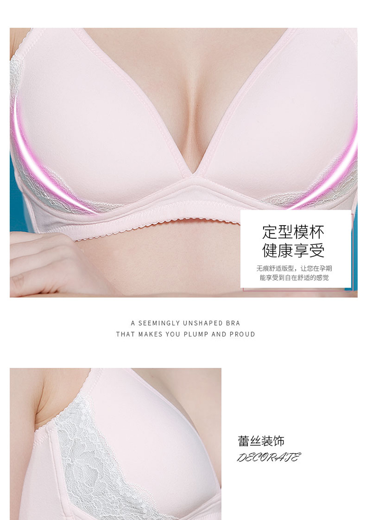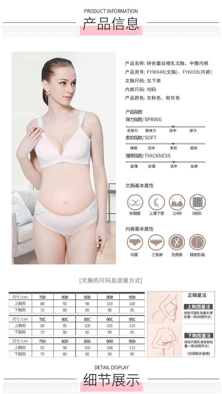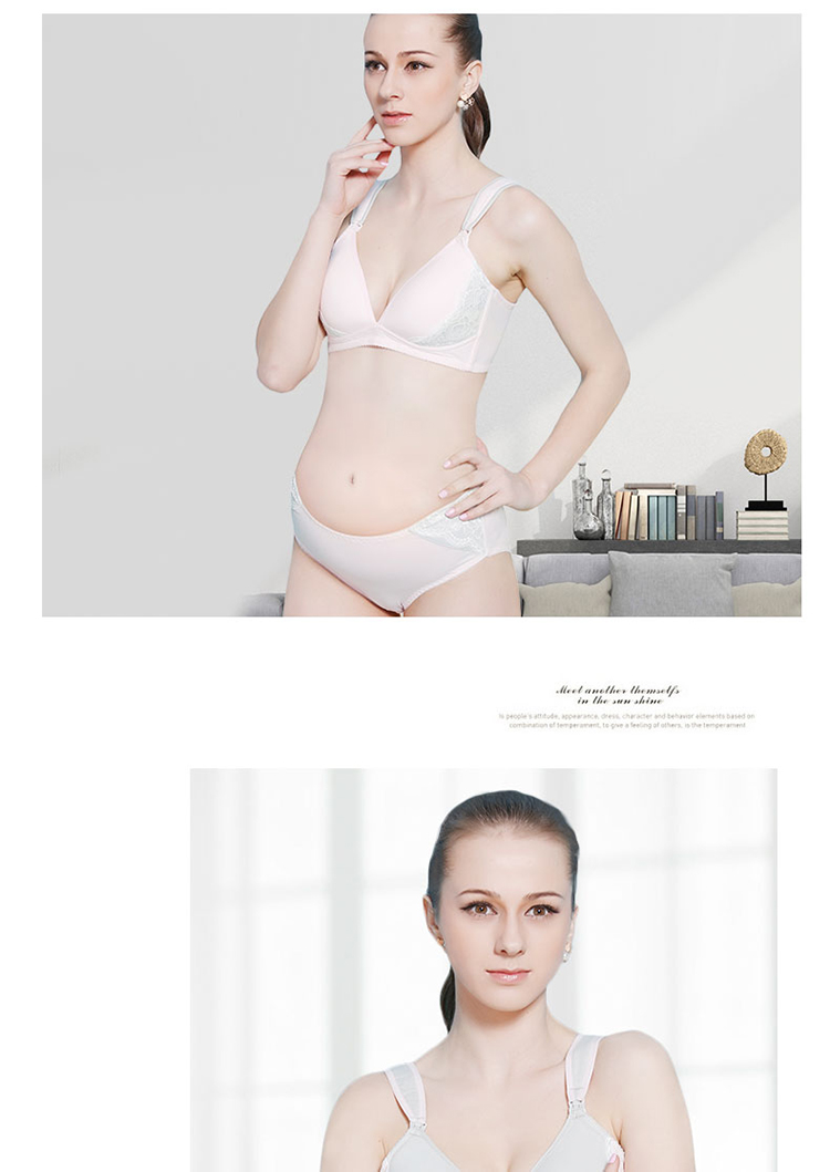 丰孕灰粉拼色蕾丝上搭扣哺乳文胸中腰内裤套装 灰粉色(5套10件)
