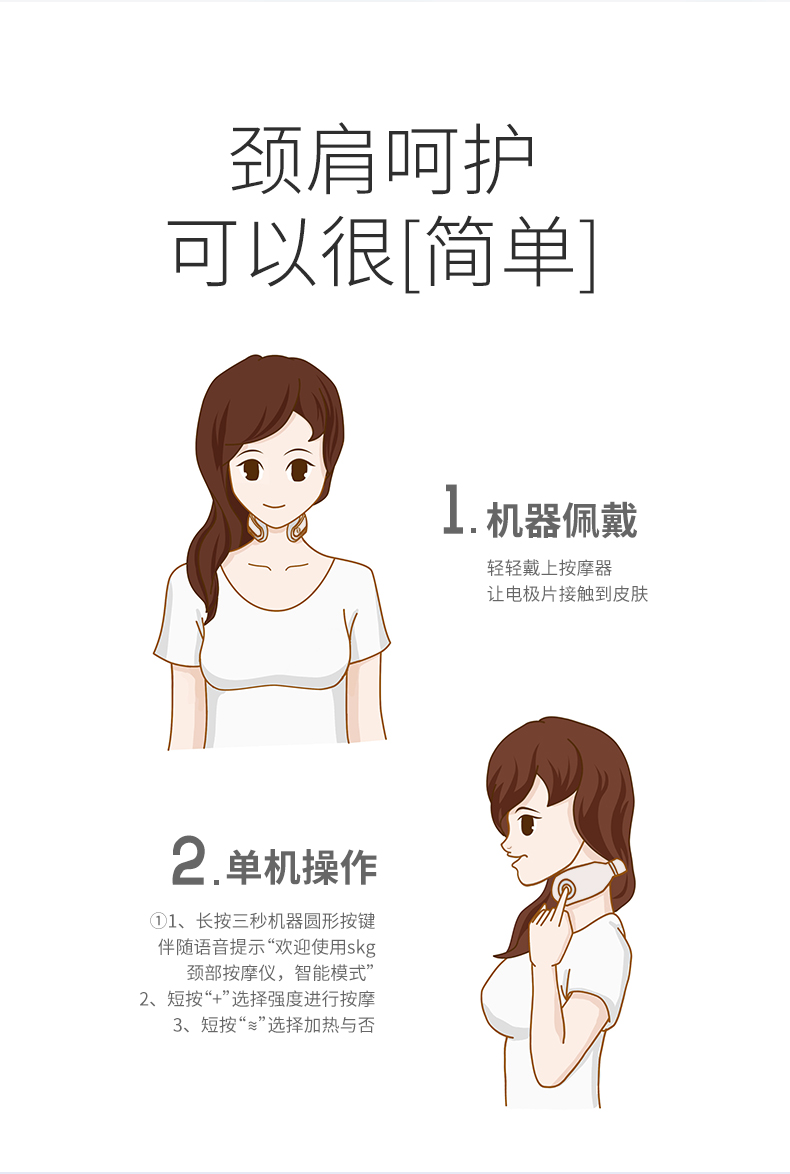 SKG颈椎按摩器办公室护颈仪劲肩部便携脖子智能琪家用李佳琦4335月白色
