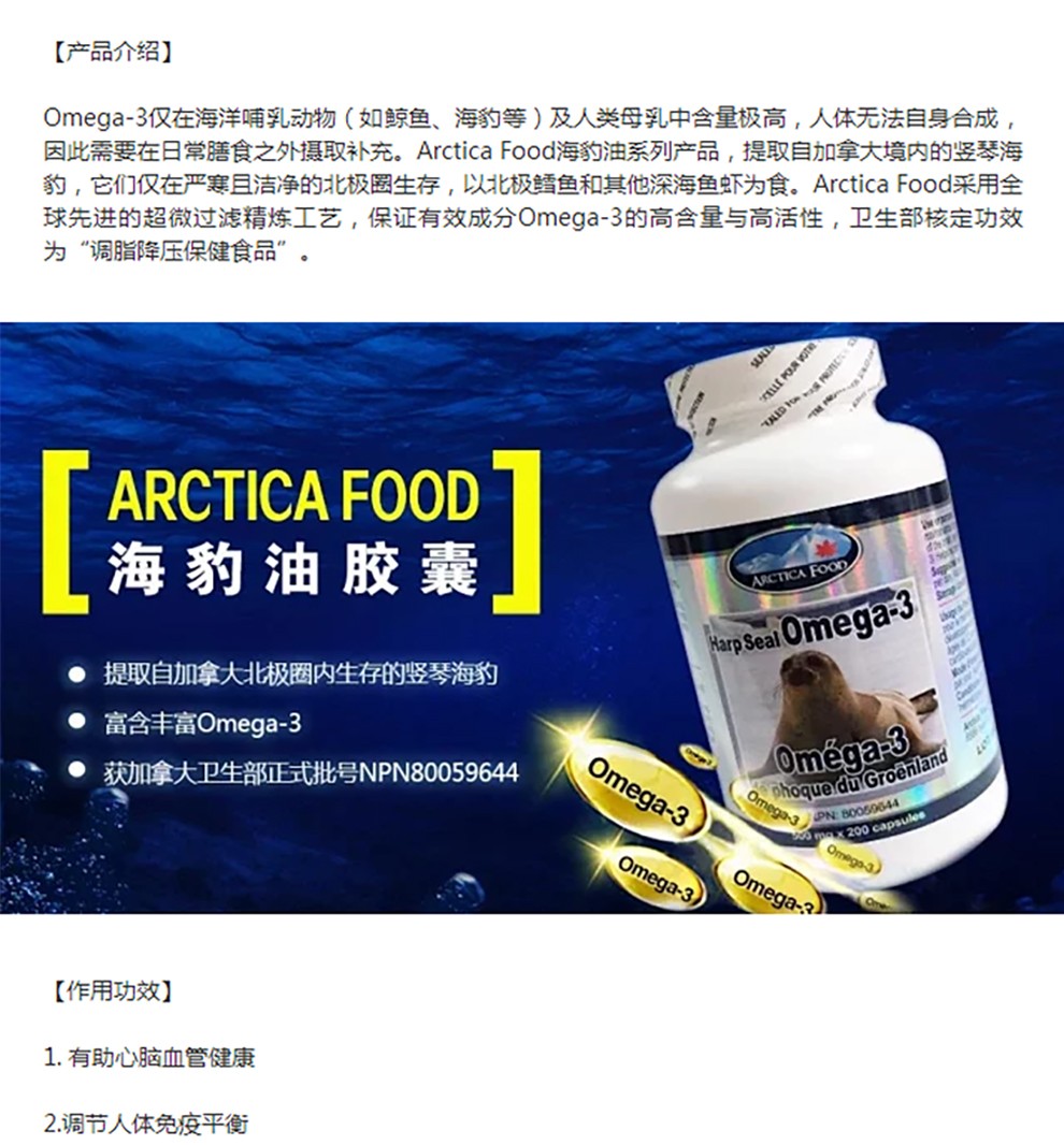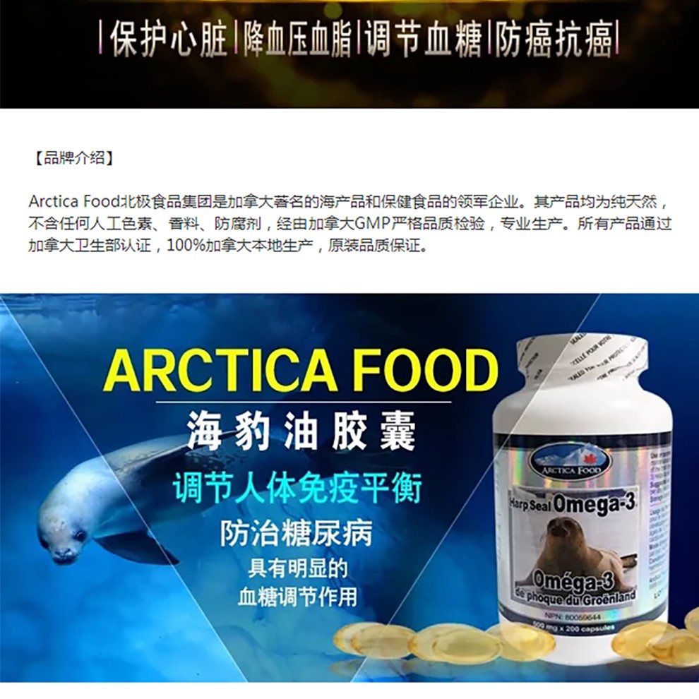 您所在的位置:首页 > 营养保健  > 营养健康 > 心脑养护  > 加拿大ArcticaFood北极食品 Omega-3 海豹油胶囊 200粒