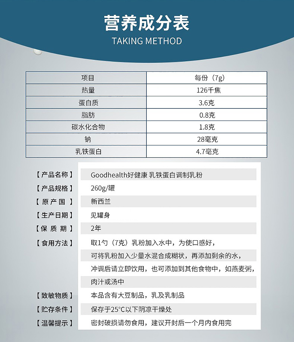【张柏芝推荐】Goodhealth好健康乳铁蛋白调制乳粉260g/罐(控价528)