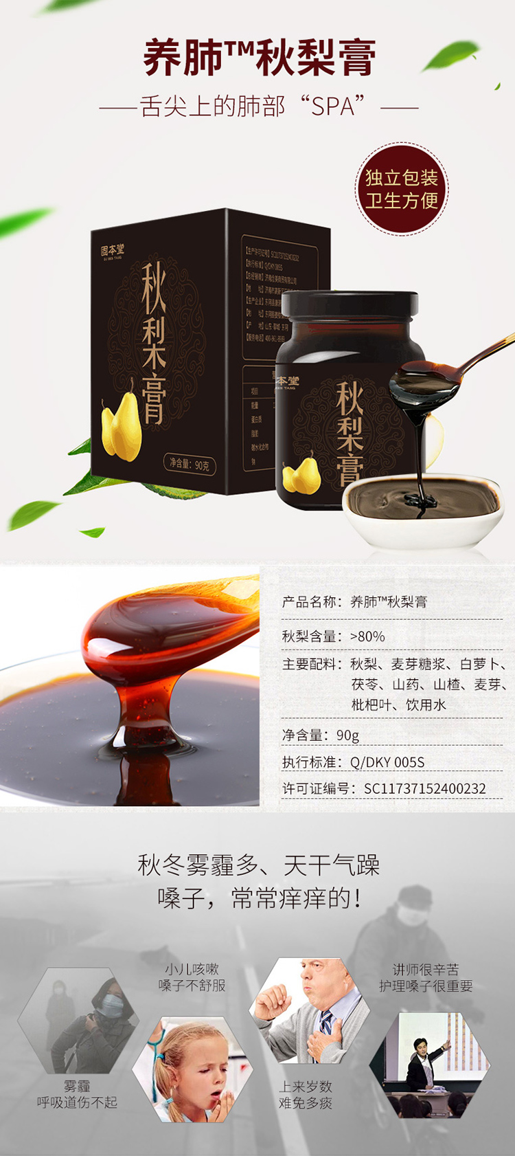 固本堂枇杷阿胶秋梨膏90g/瓶